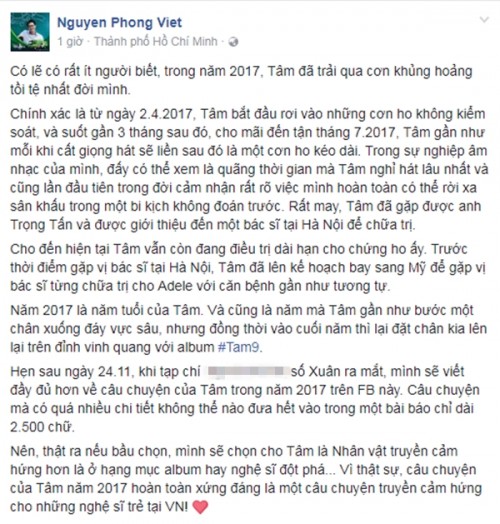 Mỹ Tâm gửi lời đến người hâm mộ trên fanpage.