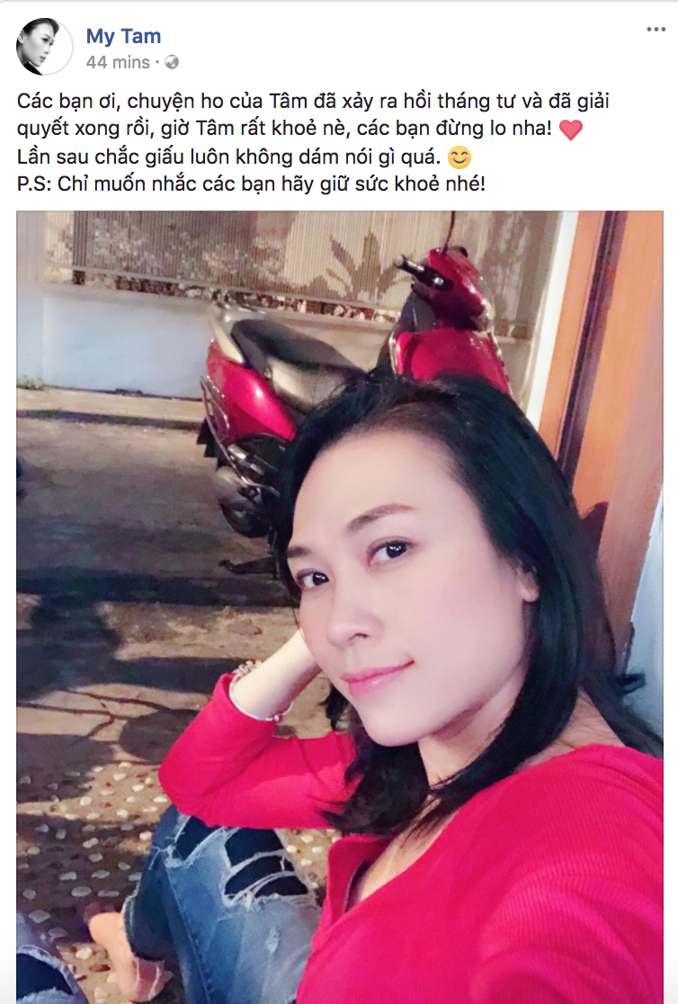 Các fan “hoạ mi tóc nâu” vô cùng đau lòng và lo lắng cho thần tượng. Biết được điều này, Mỹ Tâm ngay lập tức lên tiếng trấn an trên fanpage, khuyên khán giả đừng lo vì sự việc đã diễn ra nhiều tháng trước nên ở hiện tại, cô vẫn khoẻ mạnh. Cô còn chọc yêu rằng lần sau sẽ giấu luôn bệnh tật.