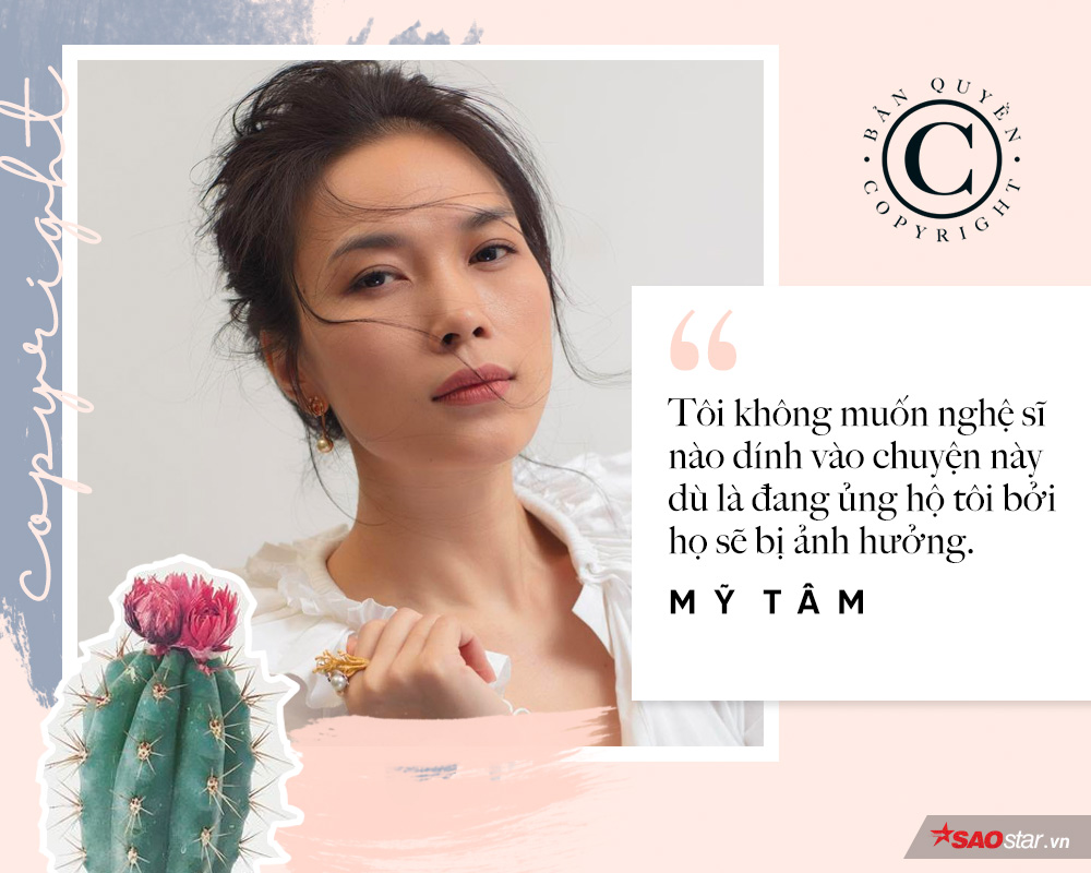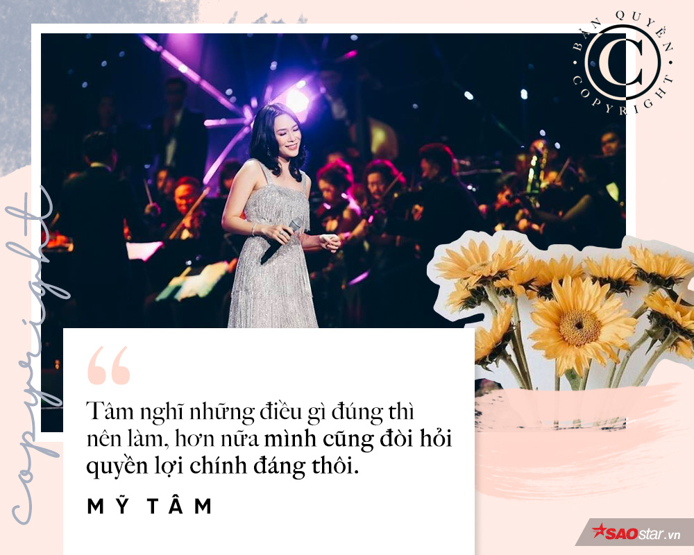 Quay trở lại hiện tại với vụ việc đang khiến Mỹ Tâm đau đầu, tuy là người tiên phong để nghệ sĩ Việt có cái nhìn khác về việc bảo vệ bản quyền của họ nhưng riêng vấn đề của bản thân, “Họa mi tóc nâu” muốn “đơn thương độc mã” giải quyết. Không phải cô không cần sự ủng hộ, không phải cô cao ngạo về vị thế của bản thân đến nỗi chẳng cần ai, nhưng cô không muốn người khác vì ủng hộ mình mà bị ảnh hưởng. Sự bản lĩnh này showbiz Việt mấy ai được như Mỹ Tâm?