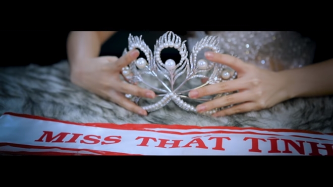Hành động tháo vương miện đặt bên dải băng Miss thất tình làm dấy lên nhiều tò mò của khán giả.