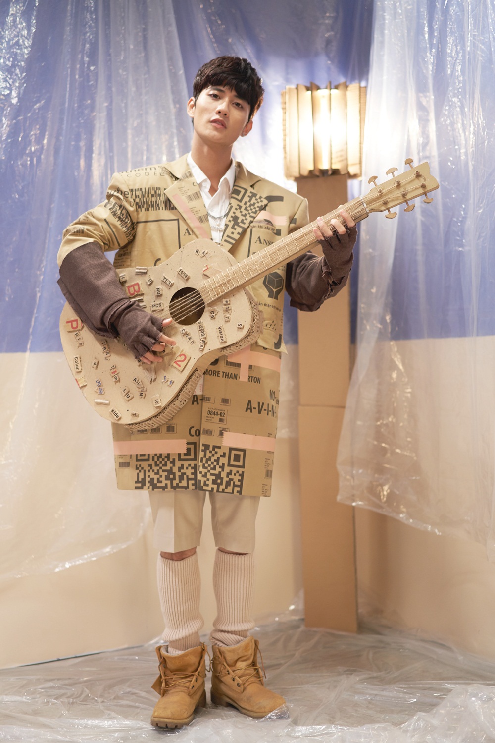 Đặc biệt, trong MV tất cả set quay, dụng cụ đều được làm bìa carton, trang phục cũng được thiết kế riêng cùng tông màu với carton, bối cảnh cho đến các vật dụng trong MV đều được thiết kế bằng tay, cho thấy sự sáng tạo, chỉnh chu của ekip trong sản phẩm lần này.