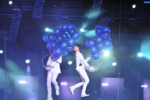 Các “Vị thần phương đông” mang 24 màn trình diễn máu lửa của Asia Concert Tour in Vietnam - The Return of The King đổ bộ SVĐ QK7 vào tháng 8/2014. Mưa có lẽ là từ khóa được nhắc đến nhiều nhất về đêm diễn này của JYJ. Và khi những ca khúc cuối được vang lên cũng là lúc bầu trời hòa cơn mưa như trút nước xuống thì đó là thời điểm vỡ òa của không chỉ fan mà ngay cả các nghệ sĩ.