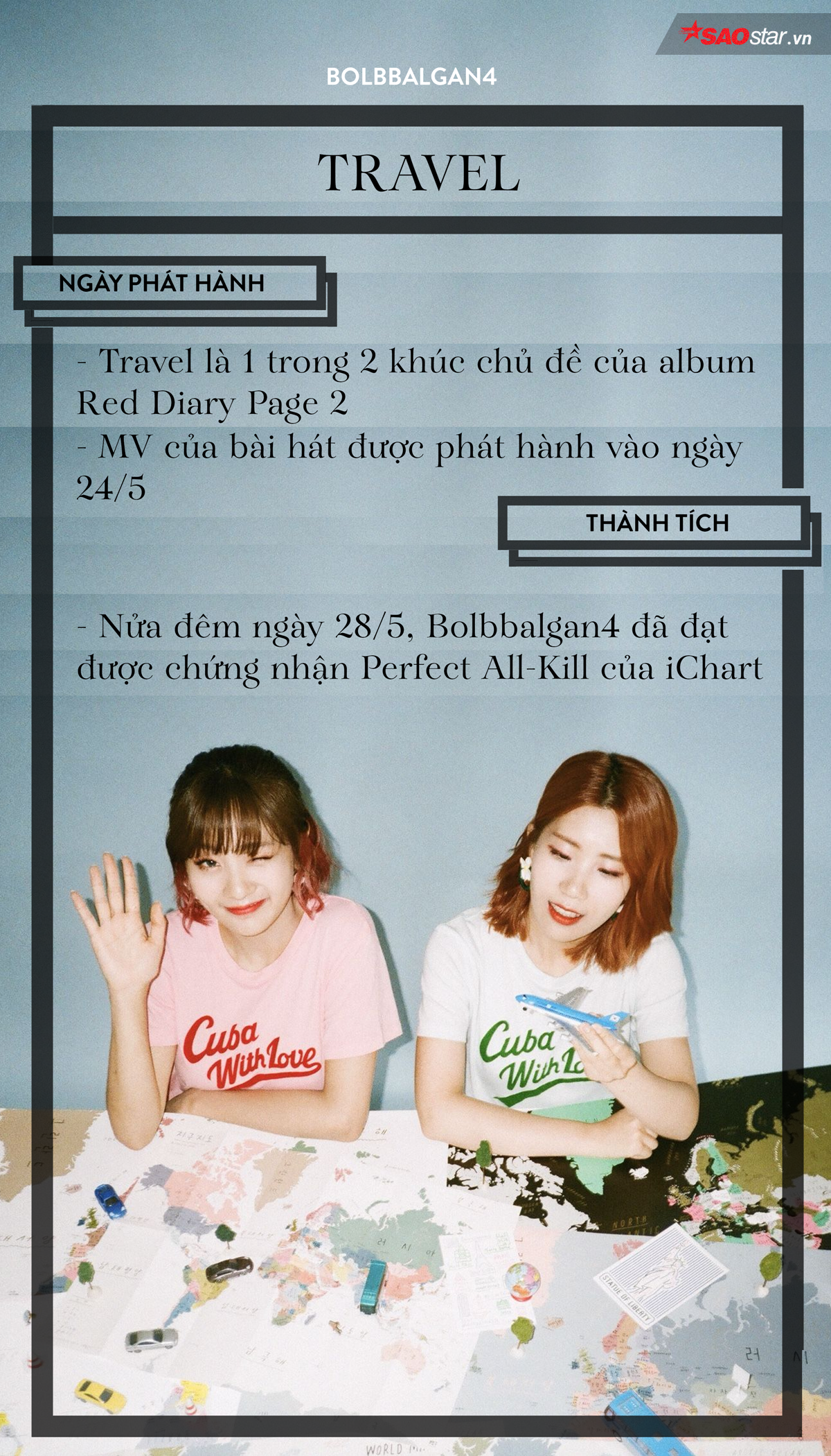 Nhắc đến Bolbbalgan4 là chúng ta nghĩ ngay đến cụm từ “quái vật nhạc số”, bất cứ khi nào 2 cô nàng này comeback đều dễ dàng đóng chiếm đóng BXH mà chẳng “nề hà” ai. Và lần trở lại mới nhất, nhóm đã tiếp tục có một ca khúc đạt Perfect All-Kill sau khi vượt qua đối thủ sừng sỏ BTS: Travel. Đây là ca khúc Kpop gần nhất đạt PAK trong năm 2018.