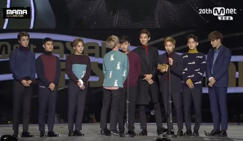 Đại diện nhà SM - EXO lần đầu tiên dành 4 cúp tại lễ trao giải MAMA năm 2015. Đây là thành tích xứng đáng mà các chàng trai tài năng nhận được sau khoảng thời gian làm việc chăm chỉ và miệt mài trong suốt cả năm.