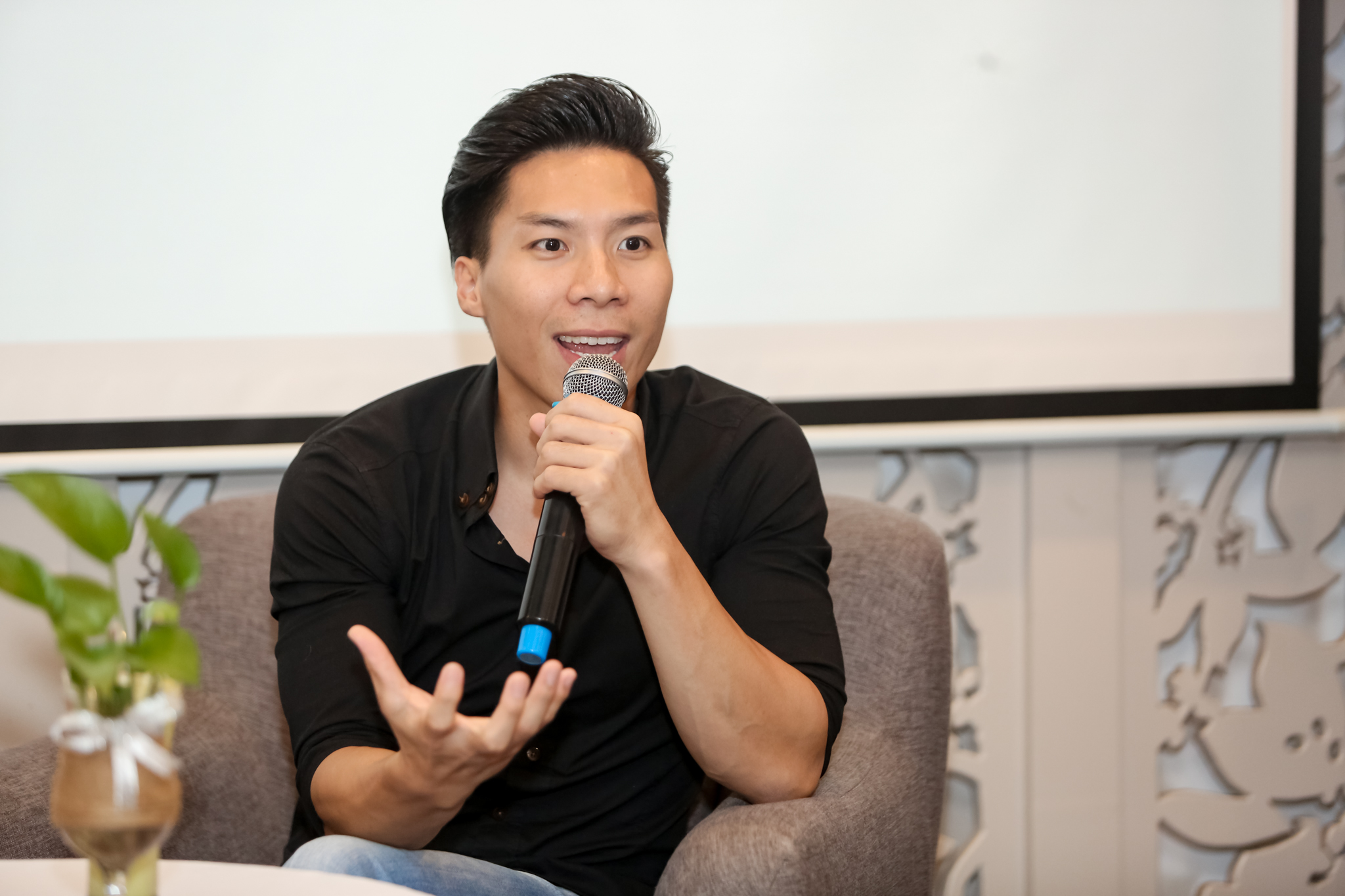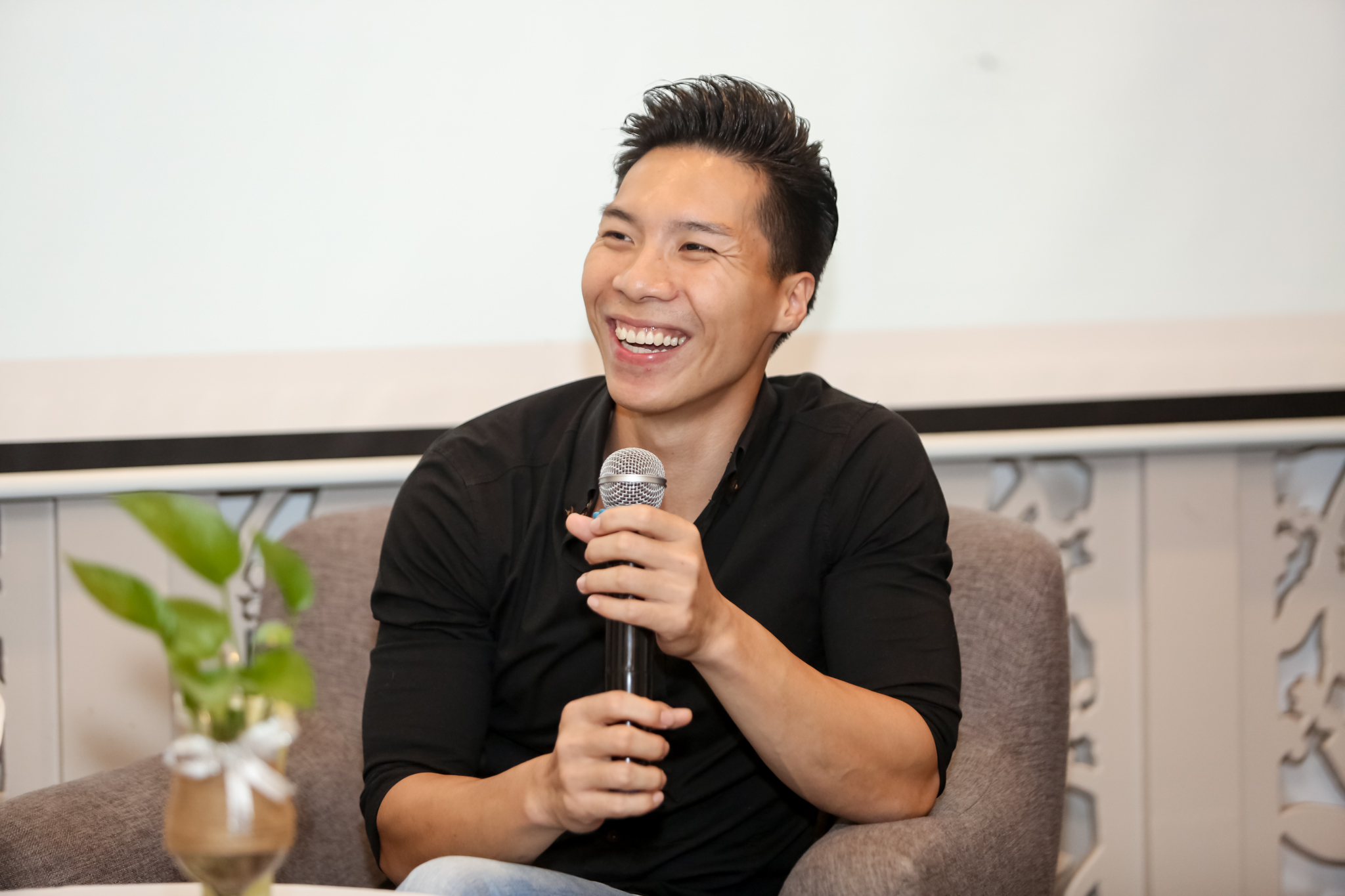 Nghệ sĩ xiếc Quốc Nghiệp trong buổi họp báo.