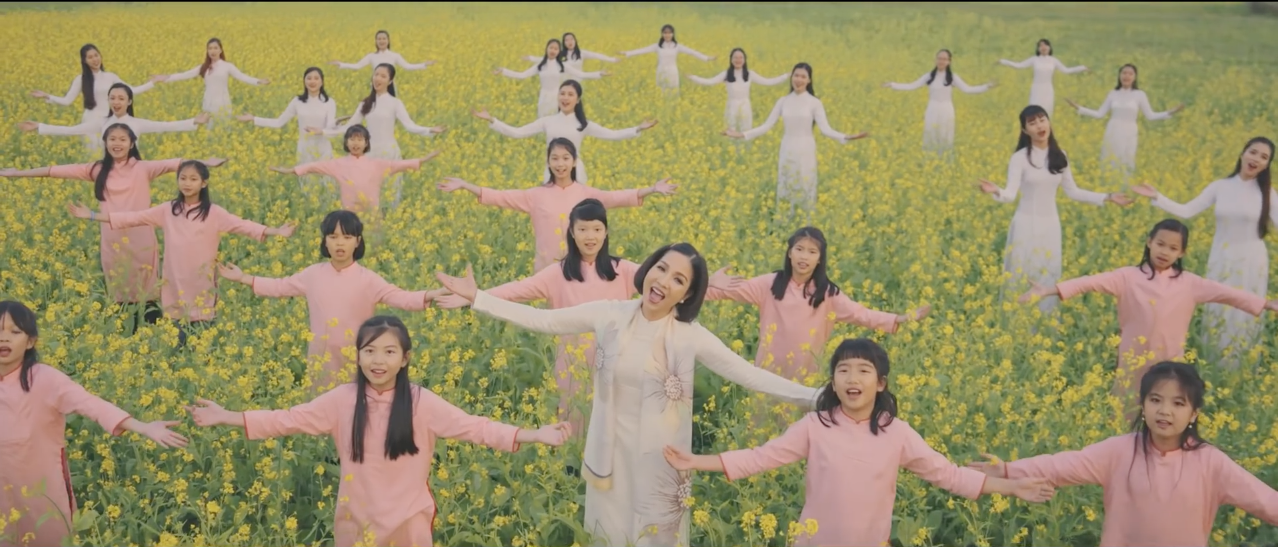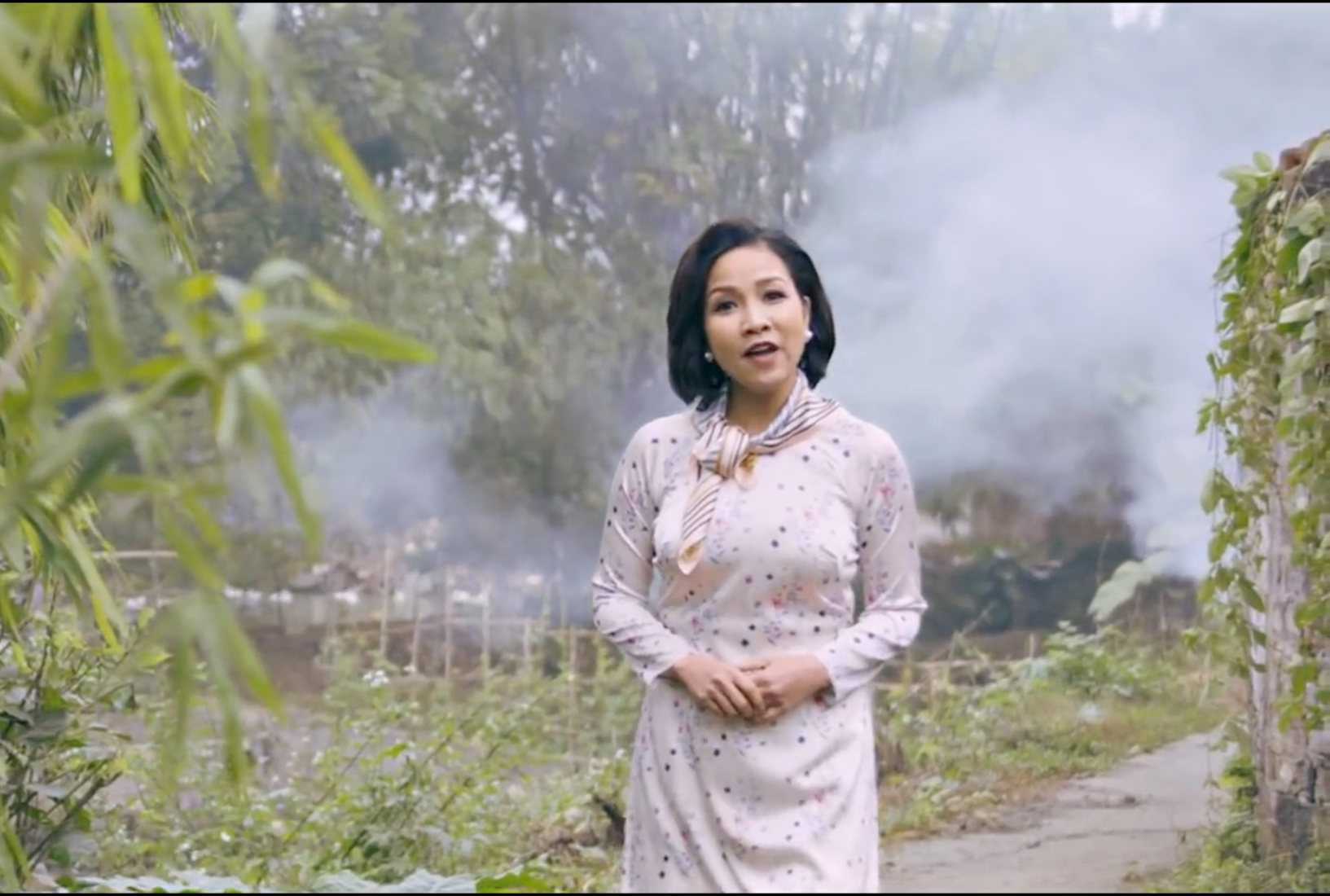 Nữ ca sĩ lựa chọn tà áo dài để kể cuộc đời của các thanh niên sống và làm việc xa quê, hạnh phúc ngày trở về.