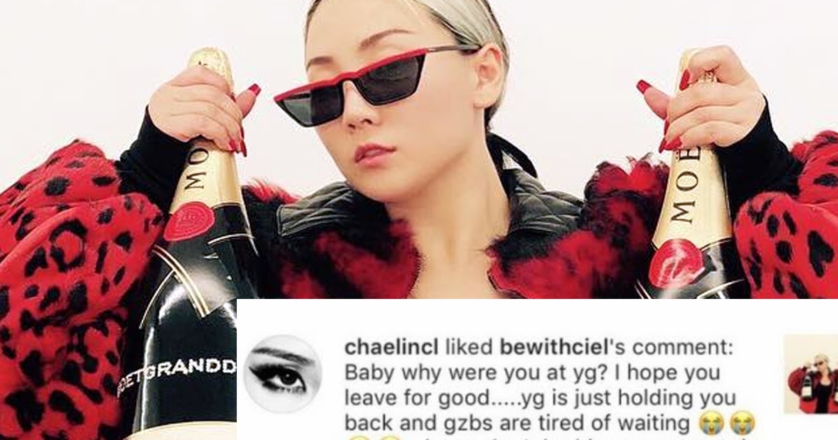 Đặc biệt, động thái của nữ ca sĩ vào 2 tuần trước càng làm netizen thêm nghi ngờ. Cựu trưởng nhóm 2NE1 đã like comment từ một fan khuyên cô nên kết thúc với YG.