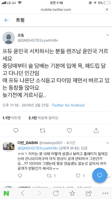 Yoon Minguk là thực tập sinh của công ty Source Music. Cách đây không lâu, một bài đăng trên Twitter của một nhân vật được cho là nạn nhân từng bị Minguk bắt nạt đã trở thành chủ đề bàn tán xôn xao của cư dân mạng với hàng ngàn lượt retweet và bình luận. Bài đăng có nội dung: “Dành cho những ai đang tìm kiếm thông tin về Yoon Minguk, hãy tìm từ khóa Lens Man là rõ. Cậu ta từng hút thuốc và uống rượu từ thời còn học cấp 2. Còn hay chửi thề và ba hoa về gia đình nữa, không chỉ tôi mà rất nhiều học sinh cùng lớp của Yoon Minguk đã vô cùng sốc khi biết tin cậu ta tham gia Produce X 101. Xin hãy loại người này trước khi quá muộn…”