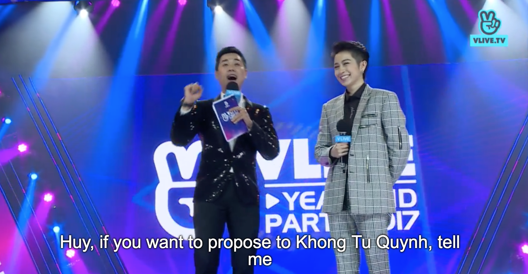 Trước khi công bố kết quả hạng mục đầu tiên, MC Nguyên Khang đã có lời giới thiệu đến toàn thể khán giả và một khoảnh khắc vô cùng hài hước đã diễn ra. Không biết vô tình hay hữu ý, anh có lời “nhắc nhở” đối với Ngô Kiến Huy khi thấy nam ca sĩ đang ngồi bên dưới hàng ghế khán giả rằng: “Huy, nếu em có muốn cầu hôn Khổng Tú Quỳnh thì nói trước để không cắt nhầm sóng trực tiếp”, cũng như nhắc chung “Nghệ sĩ nào tối nay muốn cầu hôn ai thì nhớ báo trước”. Phát ngôn này đã khiến khán giả ở nhà hát Hoà Bình cười ầm lên vì không quá khó để họ liên tưởng đến “tâm bão” Trường Giang cầu hôn Nhã Phương trên truyền hình vừa diễn ra ngày hôm qua.