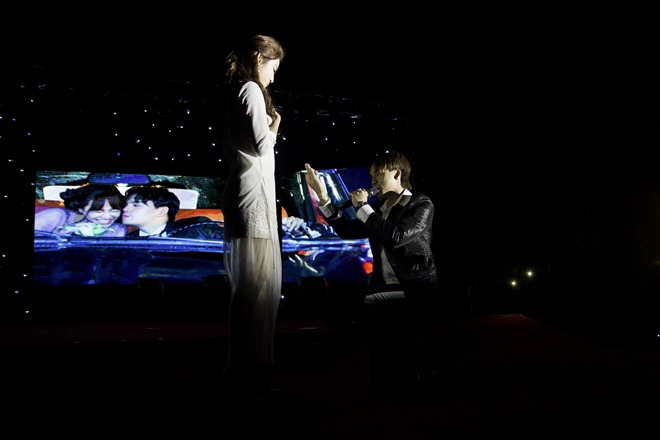 Một trong những điểm nhấn thú vị nhất của chương trình chính là màn “cầu hôn” bất ngờ ngay trên sân khấu mà Nguyễn Trần Trung Quân dành cho Á hậu Huyền My.