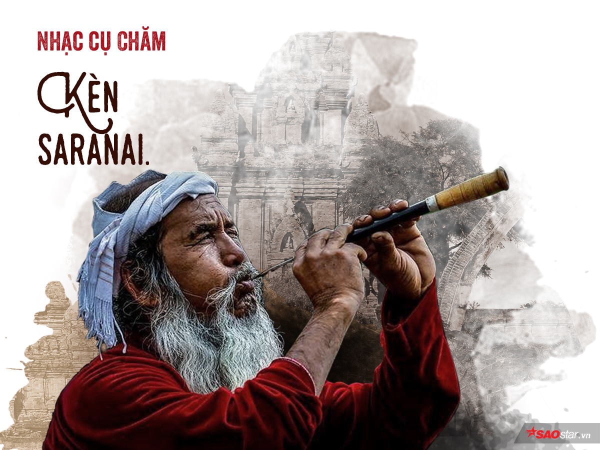 Đặc biệt nhất trong hệ thống nhạc cụ Chăm là kèn Saranai. Đây là loại nhạc cụ có tên rất gần gũi với sarunai của người Ba Tư, surunai của người Mã Lai, nhưng Saranai của người Chăm có nét đặc trưng riêng. Kèn Saranai có ba phần gắn liền nhau gồm phần chuôi làm bằng đồng để gắn lưỡi gà bằng lá buông, phần thân làm bằng gỗ đục rỗng có bảy lỗ chính phía trên và một lỗ phụ phía dưới, và phần loa làm bằng gỗ quý, sừng trâu hay ngà voi đục rỗng ruột để khuếch đại âm thanh.