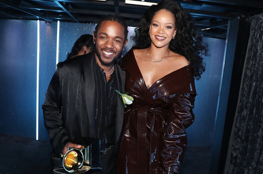 May quá, hình ảnh này trông đỡ “nặng nề” hơn, có lẽ bộ cánh đã cứu cô khá nhiều. Chiếc cúp trên tay Kendrick Lamar là dành cho cặp đôi này với giải thưởng Best Rap/Sung Performance.