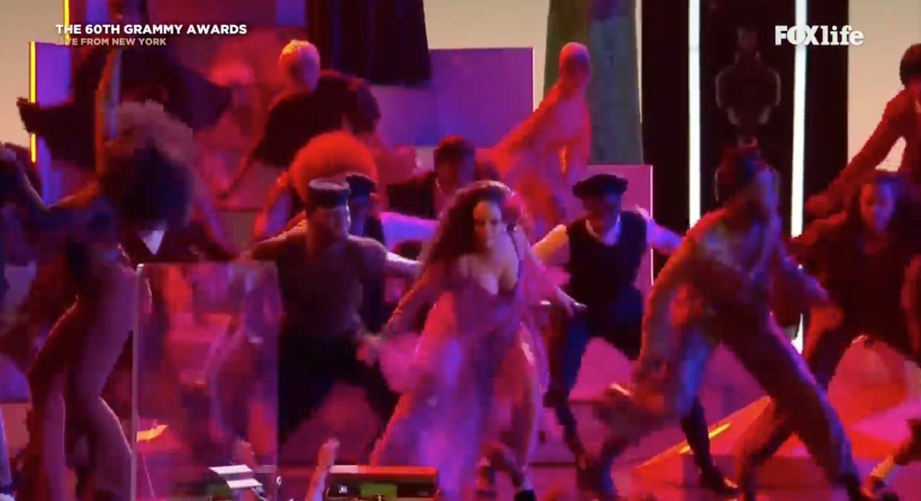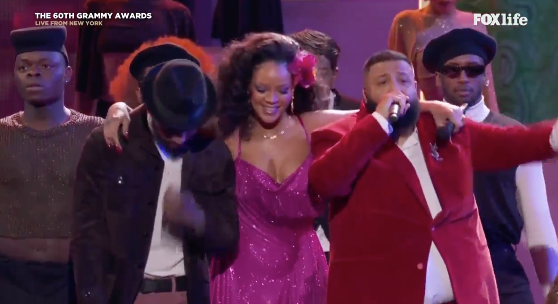 Sáng 29/1, lễ trao giải âm nhạc lớn nhất thế giới Grammy đã tổ chức lần thứ 60 thu hút sự chú ý của đông đảo người hâm mộ. Bên cạnh loạt sao bự tham gia trên sân khấu trình diễn như Lady Gaga, Miley Cyrus, Elton John, P!nk, Kesha,… sự xuất hiện của Rihanna cũng được chờ đón. Cô nàng thể hiện Wild Thoughts cùng DJ Khalid, một tiết mục đã làm khán giả “té ngửa”, không chỉ vì phần trình diễn hay ho mà còn bởi sự nặng nề với thân hình mũm mĩm bất ngờ.