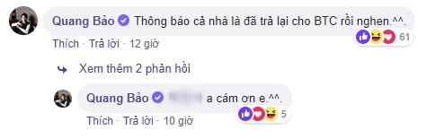 Hình ảnh cùng dòng trạng thái mà MC Quang Bảo đăng tải trên trang cá nhân.