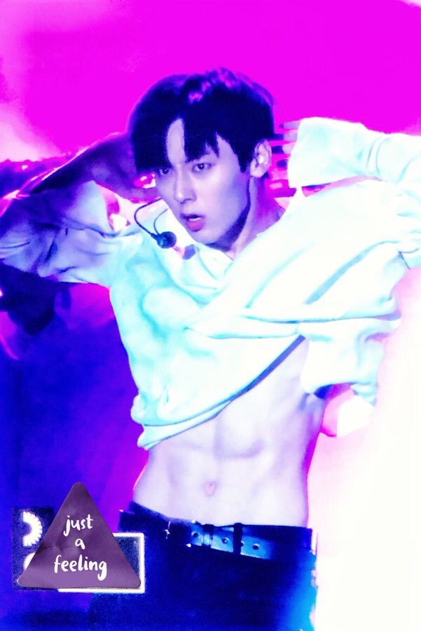 Fancam Minhyun vô tình để lộ cơ bụng.