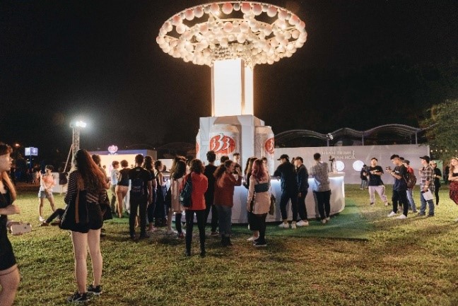 Một quầy bar 333 độ giữa Hoàng Thành Thăng Long với điểm nhấn là những chi tiết mô phỏng hình ảnh bọt bia độc đáo giúp khán giả tận hưởng trải nghiệm thưởng thức âm nhạc tự do, đúng điệu.