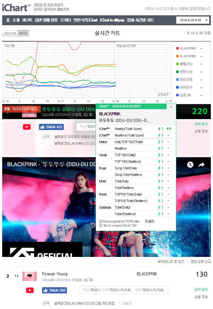 Để đạt được PAK, Ddu-du Ddu-du đã phải “chiến đấu” vất vả với Travel từ “quái vật nhạc số” Bolbbalgan4 - cái tên thống lĩnh BXH Kpop 3 tuần qua. Bên cạnh đó, thành tích này cũng giúp BlackPink trở thành nhóm idol nữ đầu tiên trong năm 2018 đạt PAK.