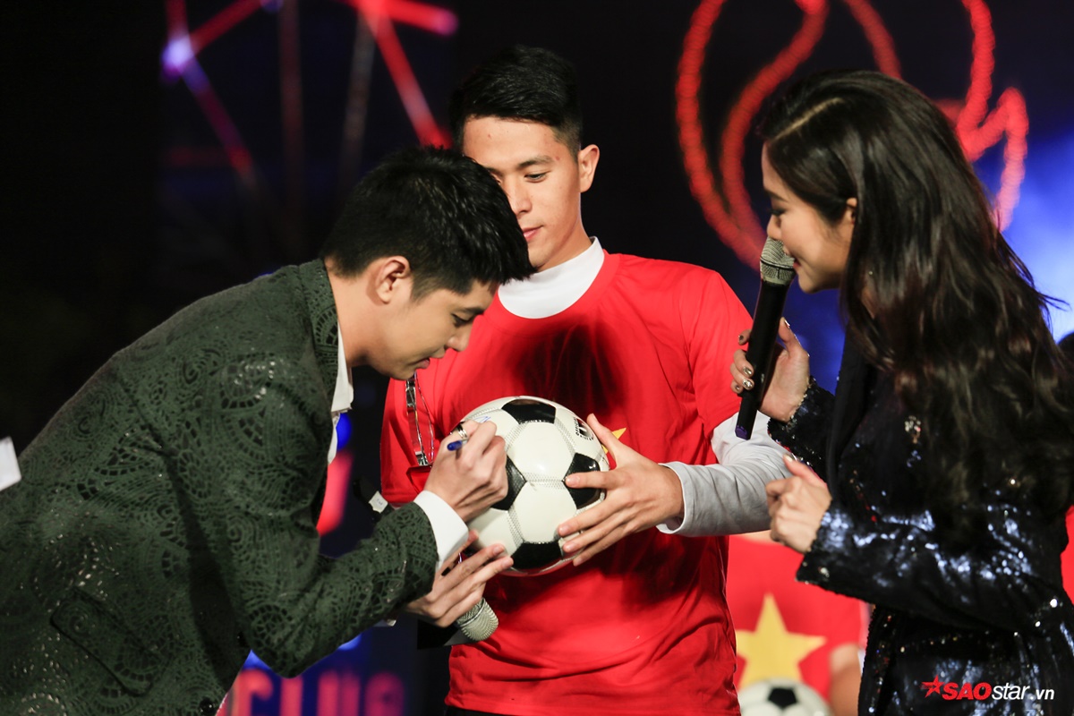 Khoảnh khắc ký tặng lên trái bóng cho Trung vệ Trần Đình Trọng.