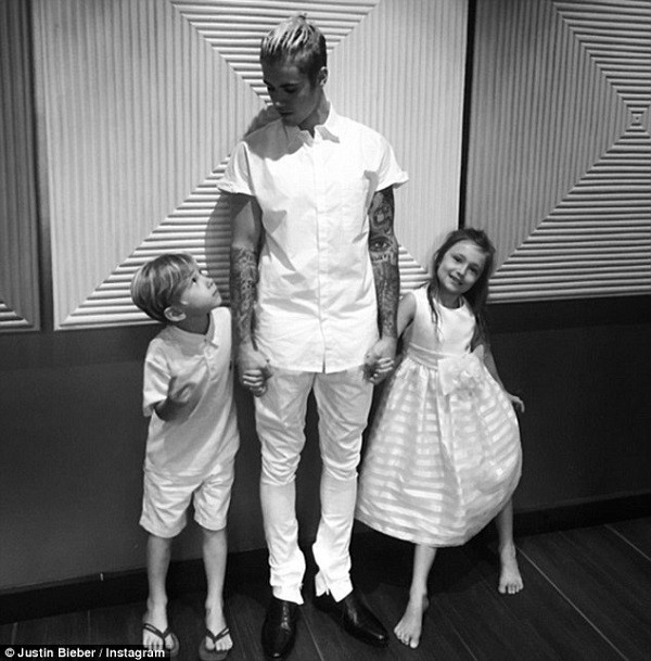 Những hình ảnh ấm áp bên các em khiến hình ảnh Justin đẹp hơn trong mắt người hâm mộ.