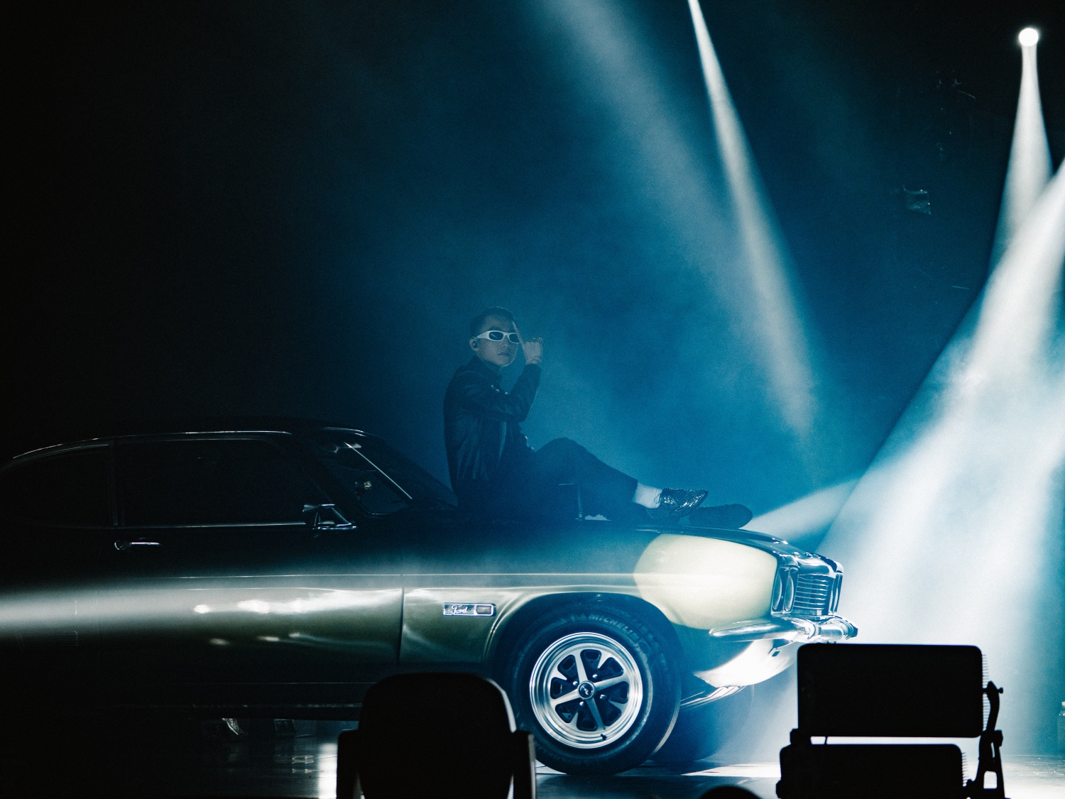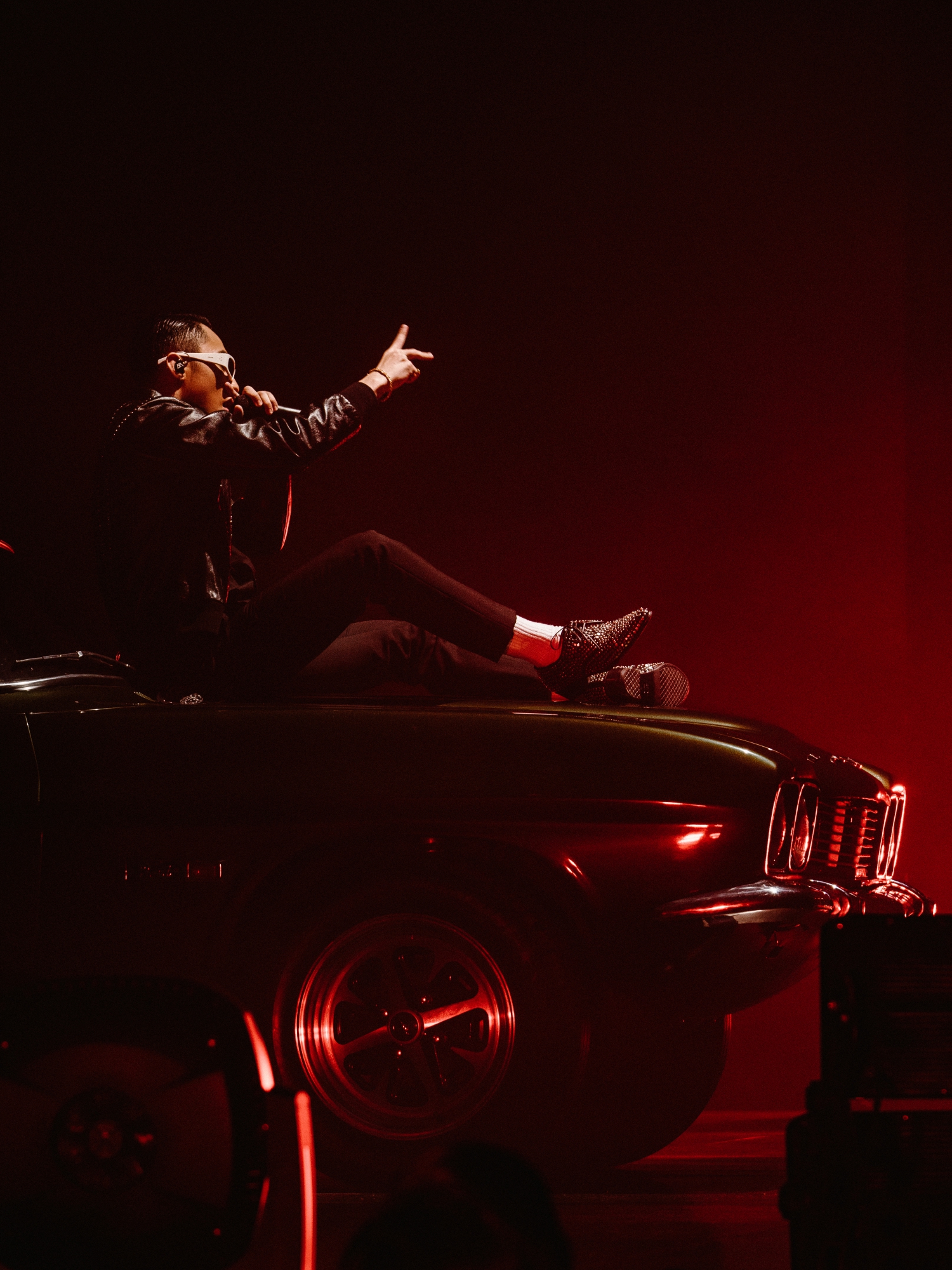 Nam ca sĩ thể hiện sự cool ngầu trên sân khấu biểu diễn.
