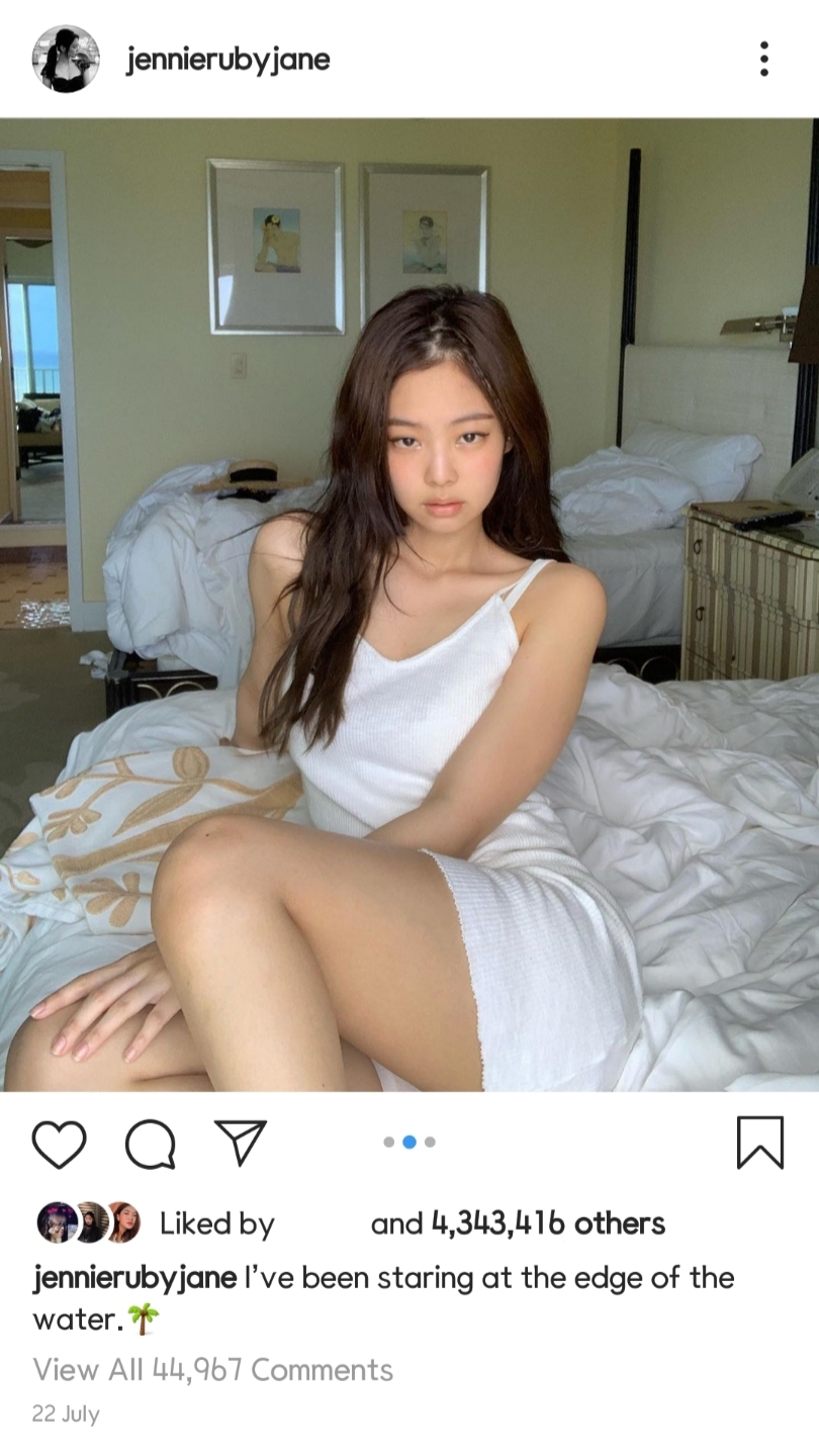 Tấm ảnh chụp “sương sương” cảnh tại phòng khách sạn cũng đủ sức đem về cho Jennie hơn 4 triệu lượt like trên Instagram.