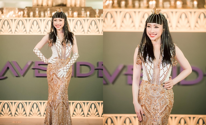 Nữ hoàng của đêm tiệc - CEO của Viện thẩm mỹ Lavender - chị Lý Thùy Chang trong tạo hình của Nữ hoàng Cleopatra quyền lực.