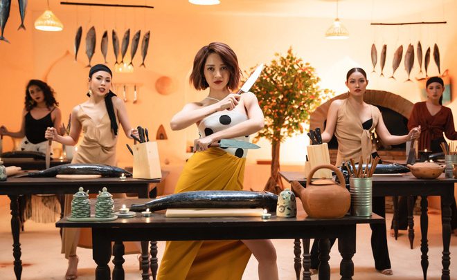 Hình ảnh cá và dao xuất hiện xuyên suốt trong MV.