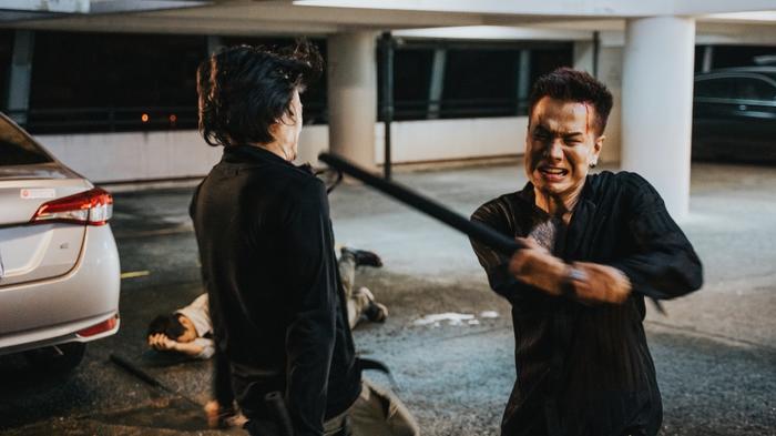 Lou Hoàng trong một phân cảnh chiến đấu với xã hội đen.