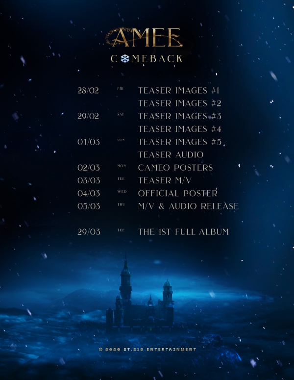Ngày 27/3, fanpage chính thức của Amee bất ngờ đưa thông báo về việc hoãn phát hành album debut được dự kiến ra mắt vào ngày 29/3. Vì tình hình dịch bệnh phức tạp, ST.319 đã buộc phải đi đến quyết định này. “Thời gian này chúng ta có nhiều vấn đề quan trọng hơn để cùng quan tâm và hướng về, đó là chung tay đoàn kết đẩy lùi bệnh dịch. Trước bối cảnh dịch bệnh phức tạp, chúng tôi nhận thấy đây không phải là thời điểm thích hợp để có thể quảng bá một sản phẩm giải trí trong sự hào hứng vui vẻ. Do vậy công ty chúng tôi đưa ra quyết định dời lịch trình phát hành debut album của ca sĩ Amee vào một thời điểm khác phù hợp hơn. Rất mong các bạn thông cảm và ủng hộ lựa chọn này của chúng tôi”, ST.319 chia sẻ với người hâm mộ.