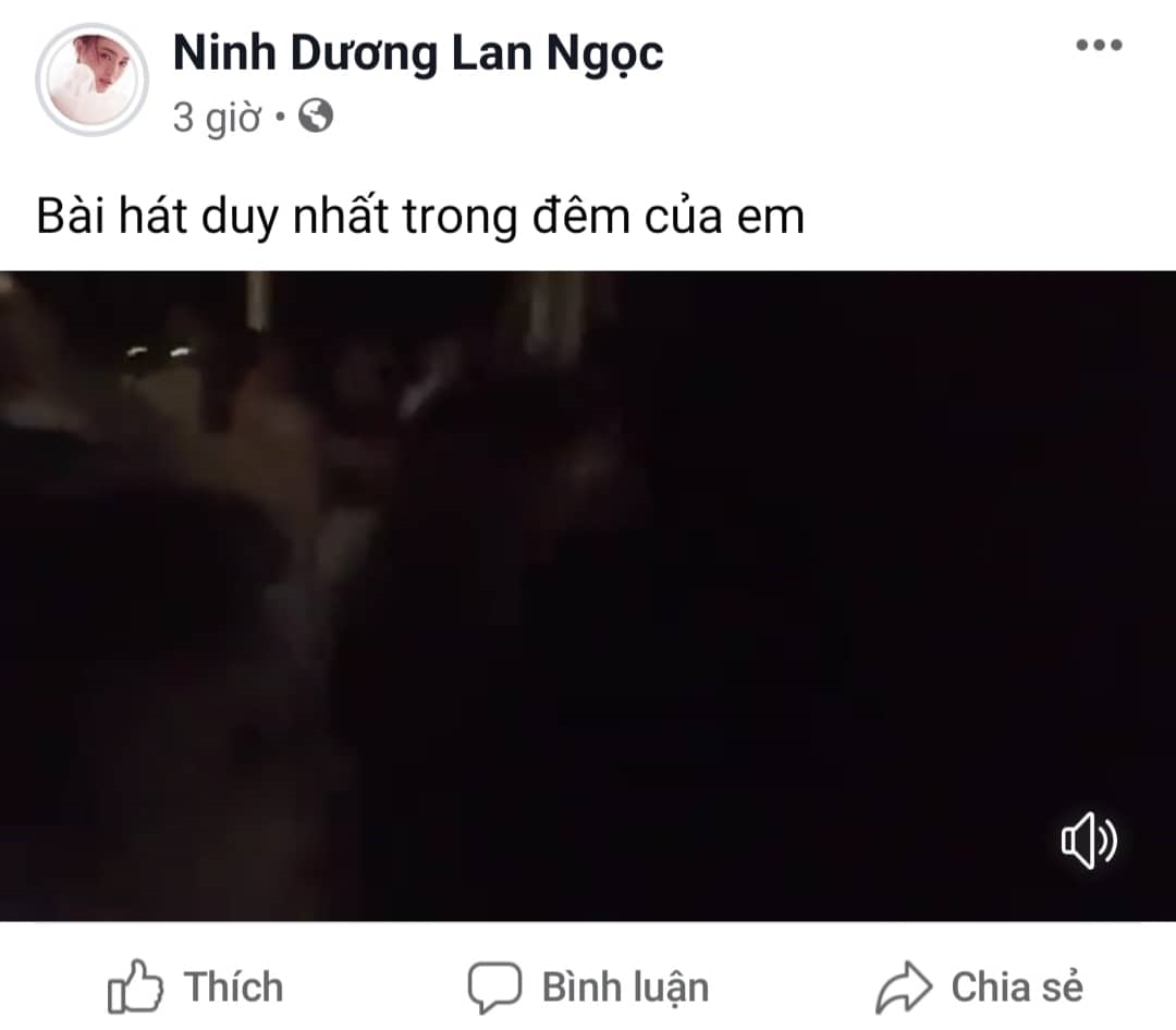Chia sẻ trên trang Facebook cá nhân đoạn clip đang ngồi hát ngon lành giữa bàn tiệc bên cạnh những người đồng nghiệp thân thiết. Mặc dù không được trình diễn trên sân khấu như mong muốn ban đầu, nhưng Ninh Dương Lan Ngọc vẫn tỏ ra vô cùng hào hứng với tiết mục của mình. Tuy nhiên, nếu ai là người có thính giác yếu ớt thì có lẽ không nghe được Ninh Dương Lan Ngọc đang hát gì. Dường như không khí đêm tiệc quá vui vẻ và nhộn nhịp nên Ninh Dương Lan Ngọc cũng đôi chút bị cuốn theo để rồi hát hò có phần… khó hiểu.