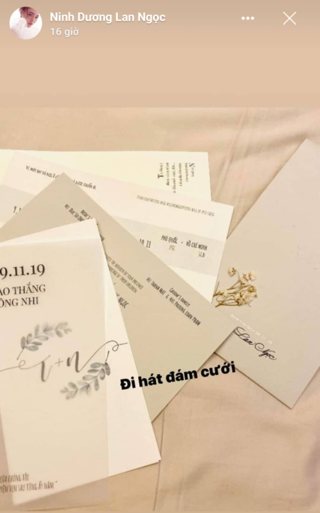 Bên cạnh đó, một số người còn đồn đoán rằng Ninh Dương Lan Ngọc ngoài việc chuẩn bị ra mắt sản phẩm mới, thì sân khấu debut rất có khả năng sẽ là… lễ cưới của Đông Nhi và Ông Cao Thắng. Khi mà suốt những ngày vừa qua, không chỉ cộng đồng mạng réo gọi mà ngay cả Lan Ngọc cũng bày tỏ mong muốn được hát tại đám cưới của đàn chị. Thậm chí mới đây, Ninh Dương Lan Ngọc còn khoe chiếc thiệp cưới từ Đông Nhi và Ông Cao Thắng với lời khẳng định chắc nịch “đi hát đám cưới”.