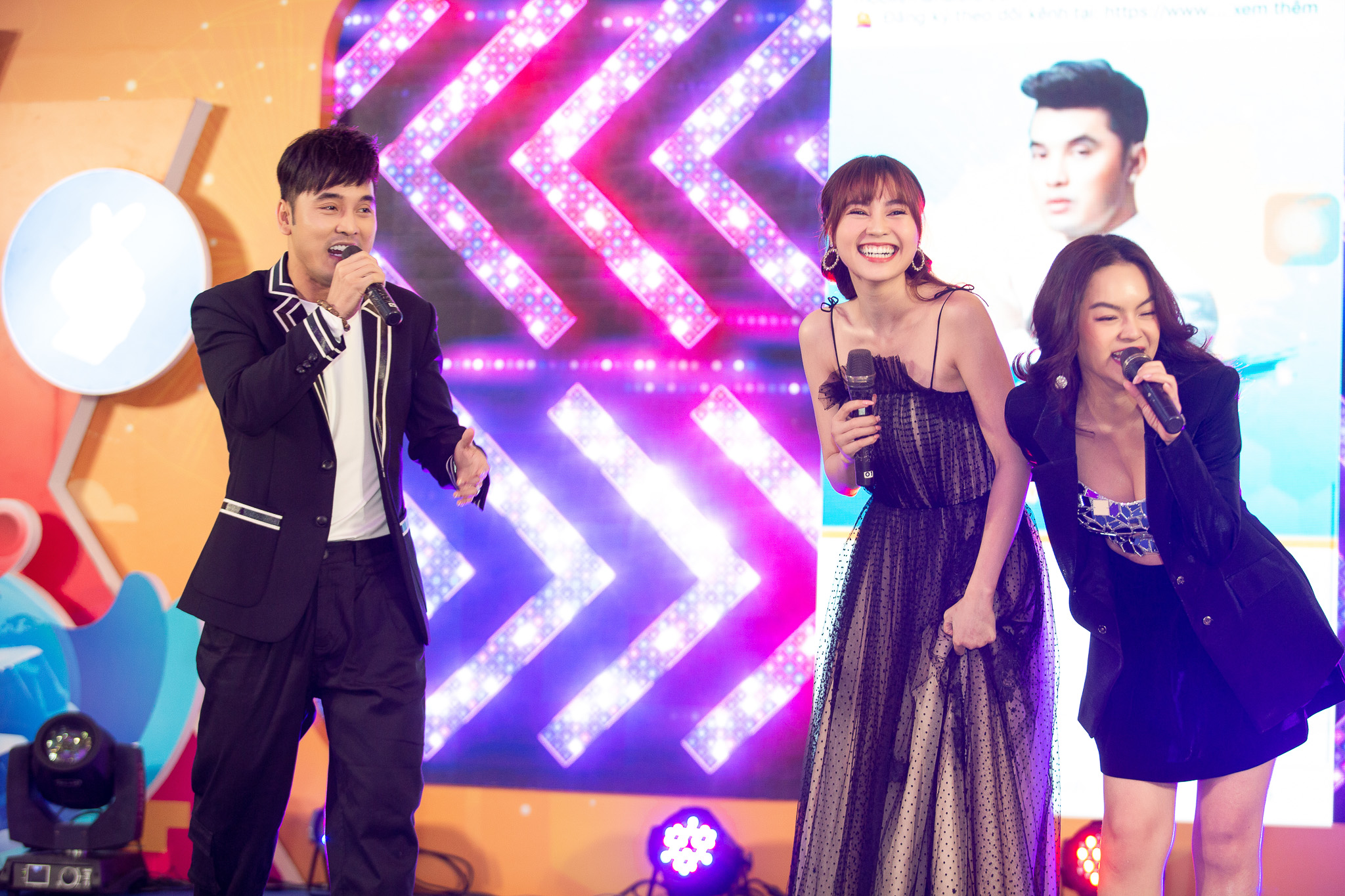 Ninh Dương Lan Ngọc tỏ ra khá bất ngờ khi đứng trên sân khấu song ca cùng Ưng Hoàng Phúc và Phạm Quỳnh Anh.