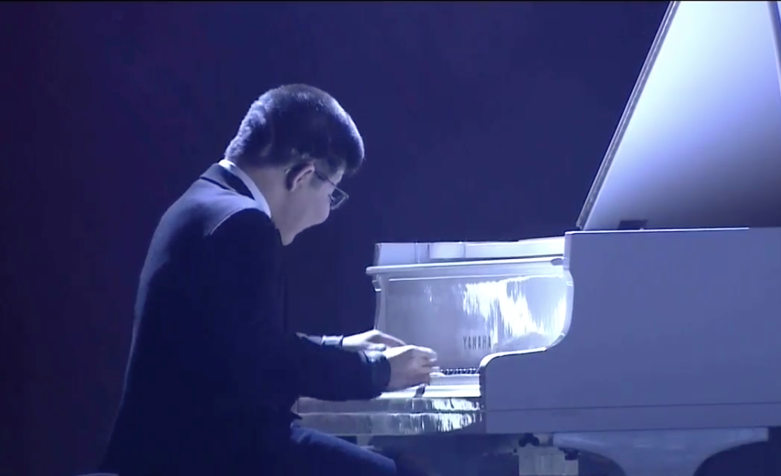 Cậu bé tài năng thể hiện khả năng chơi đàn piano điệu nghệ.