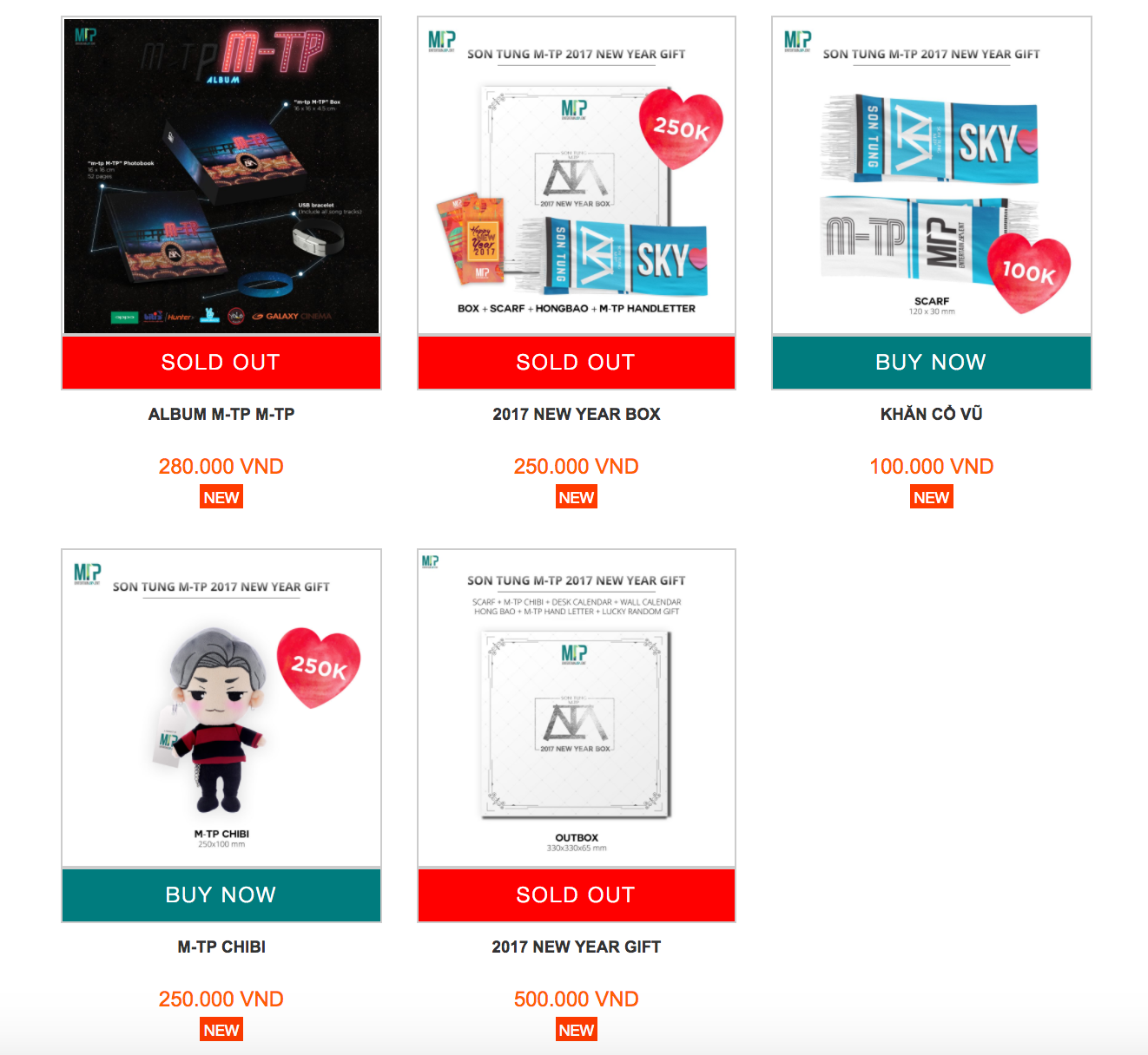 Nhân dịp đầu năm cũng như ăn mừng nhận nút vàng Youtube, như một lời tri ân, Sơn Tùng và ekip quyết định cho ra mắt bộ merchandise (sản phẩm quà tặng) gửi đến người hâm mộ. Việc giới thiệu bộ merchandise (bao gồm lịch tết, bao lì xì, khăn cổ và 300 vé mời tham dự buổi Private Year End Meeting) cũng chính là hướng phát triển mới trong tương lai của công ty M-TP Entertainment, bắt nhịp với văn hóa Kpop nói riêng, thị trường âm nhạc thế giới nói chung. Giá cho nguyên bộ sản phẩm là 500.000 đồng còn với từng món bán lẻ thì dao động từ 100.000 đến 250.000.