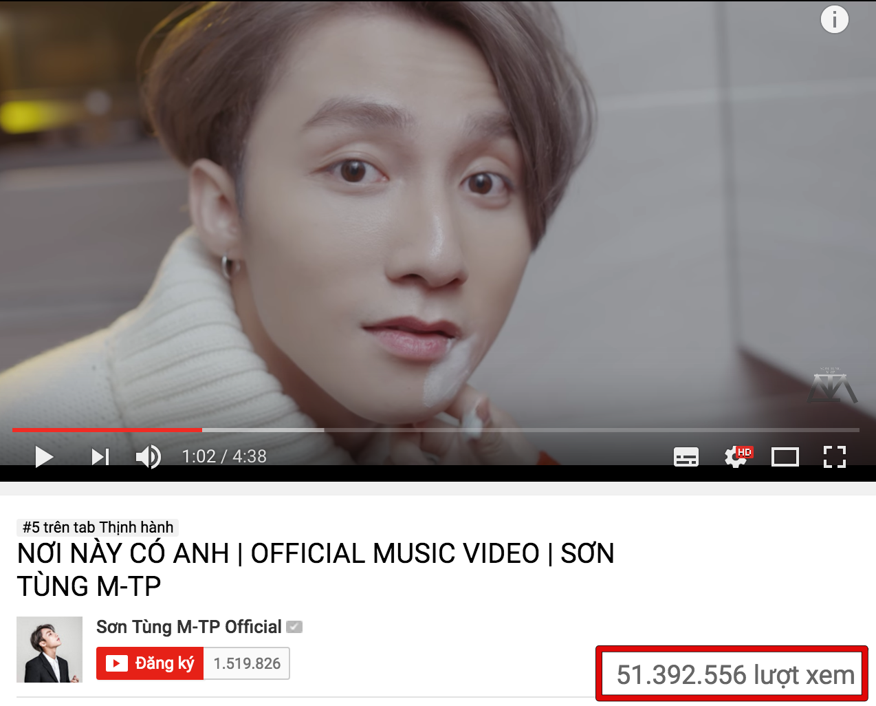 MV Nơi này có anh chính thức ra mắt vào 00h00 ngày 14/2 và tính đến ngày hôm nay là đúng 2 tuần, sau khi lập hàng loạt thành tích, kỉ lục “khủng”, cuối cùng MV đã chạm mốc 50 triệu lượt xem. Với đà này, có lẽ chỉ cần khoảng 1 tháng nữa thôi là Sơn Tùng và đại gia đình nhà Sky sẽ hoàn thành nốt nửa chặng đường “cày view” còn lại để đưa Nơi này có anh tiến thẳng về đích 100 triệu lượt xem.