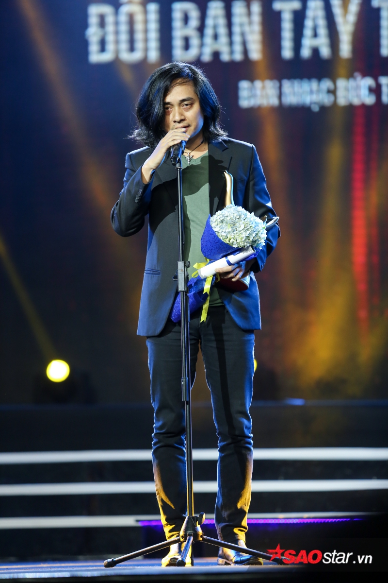 Đại diện ekip Đôi bàn tay thắp lửa lên nhận giải Chương trình của năm và chia sẻ đầy cảm xúc về nam rocker quá cố Trần Lập.