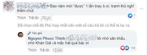 Hình ảnh Noo Phước Thịnh chia sẻ đã khiến cho người hâm mộ vô cùng lo lắng, rất nhiều lời hỏi han đã được gửi đến nam ca sĩ. Tuy nhiên, đáp lại sự lo lắng đó, Noo Phước Thịnh đã có lời hồi đáp khiến người hâm mộ cảm thấy vô cùng ấm lòng: “ Tôi nhớ sân khấu , nhớ Khán Giả và mắc hát quá bác ơi“. Điều đặc biệt nằm trong câu trả lời của Noo Phước Thịnh chắc chắn là việc cụm từ “khán giả” được viết hoa, đây dường như là cách mà nam ca sĩ thể hiện sự trân trọng dành cho người hâm mộ. Chỉ với một tiểu tiết nhỏ như vậy cũng đủ hiểu được lý do vì sao Noo Phước Thịnh luôn luôn nhận được những tình cảm tuyệt vời từ khán giả cũng như người hâm mộ.