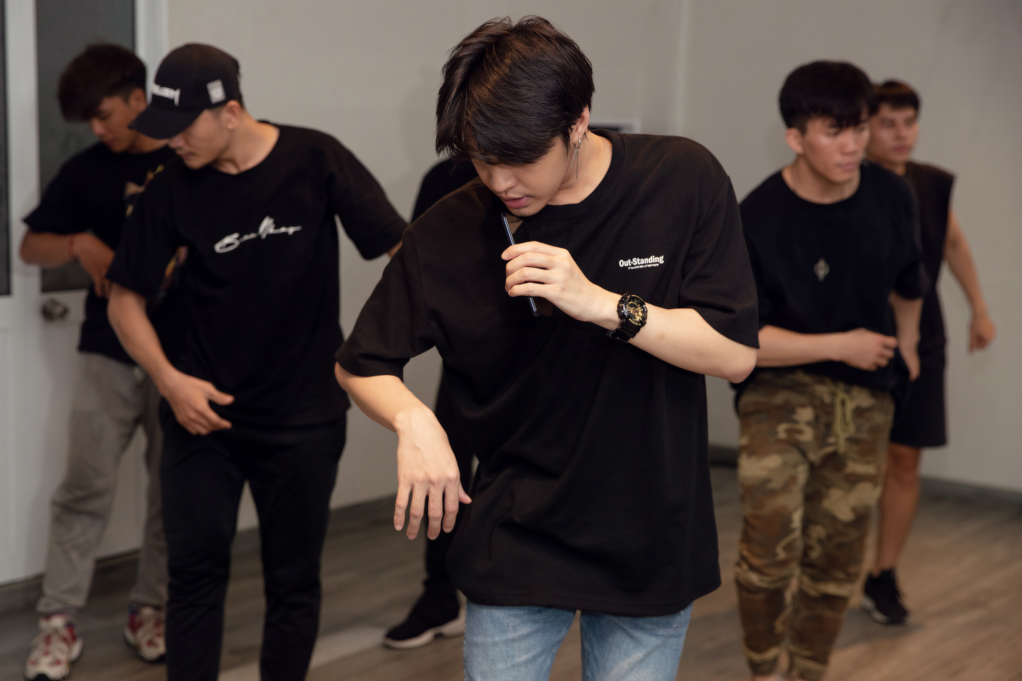Áp lực nhiều là thế nhưng nam ca sĩ vẫn giữ được thần thái vui tươi trong suốt buổi tập, thậm chí đôi lúc còn pha trò giúp mọi người cảm thấy thoải mái.