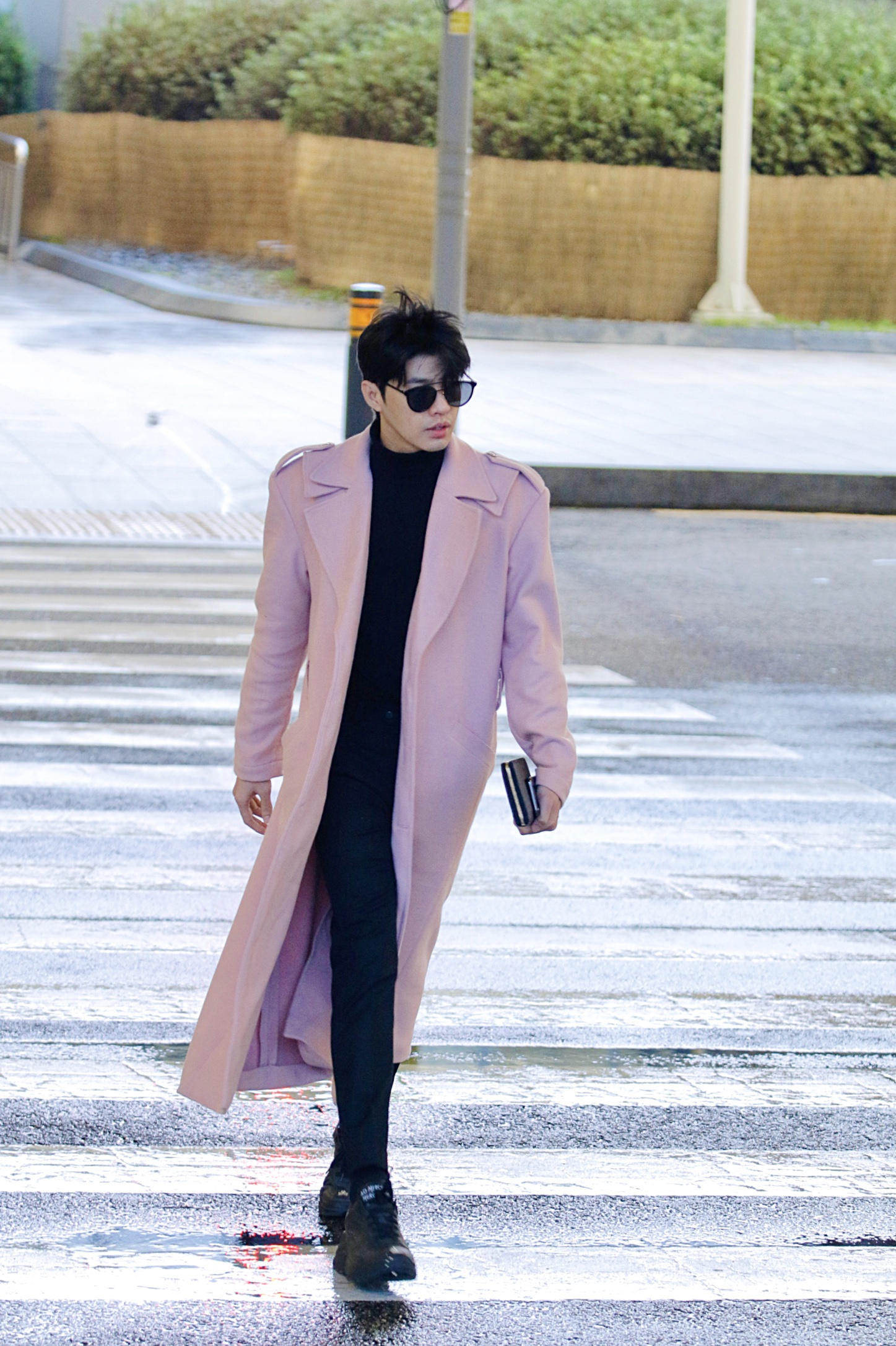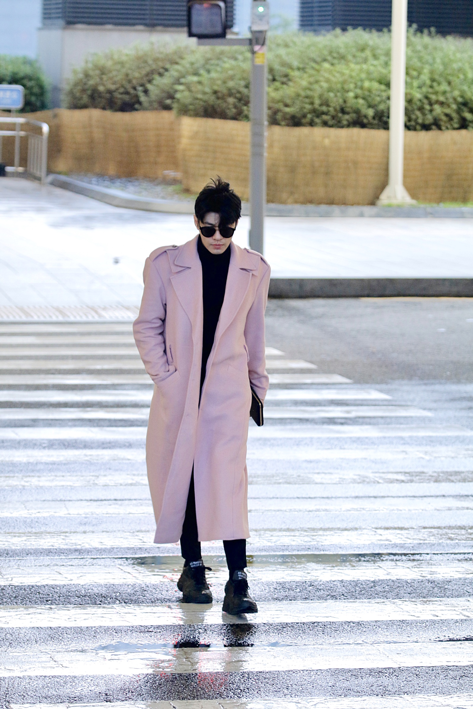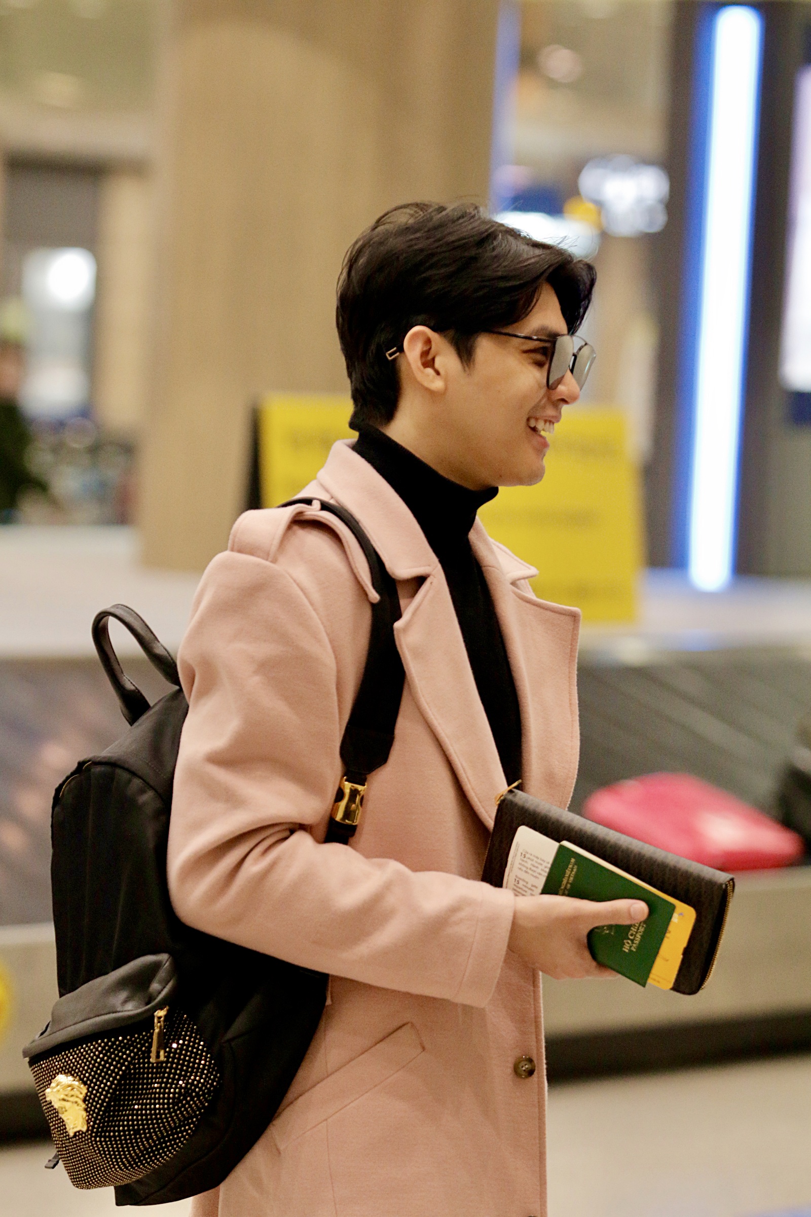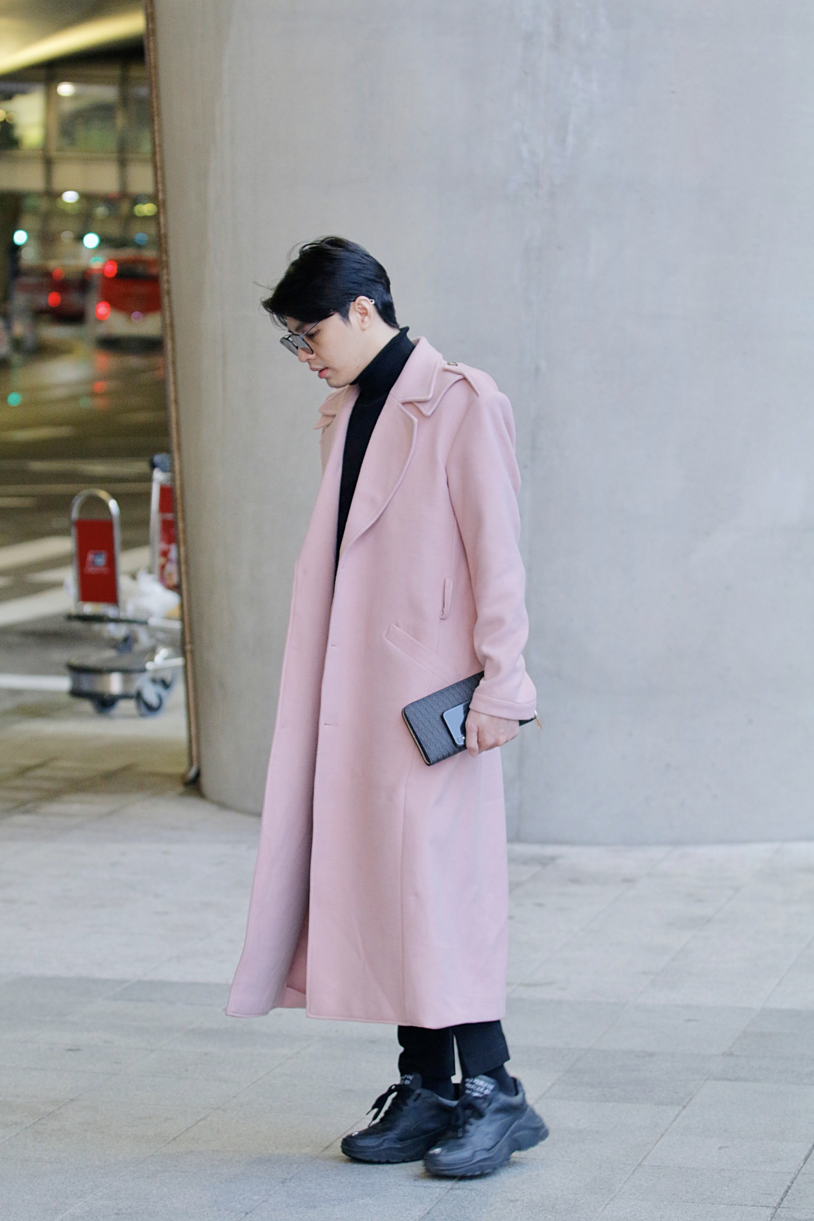 Anh gây ấn tượng với phong cách thời trang chuẩn nam thần xứ Hàn khi diện nguyên set đồ đen với điểm nhấn là áo măng tô màu hồng dáng dài. Noo Phước Thịnh cho biết anh đang rất hồi hộp nhưng cũng không kém phần mong chờ tới ngày diễn để được mang ca khúc mới lên sân khấu.