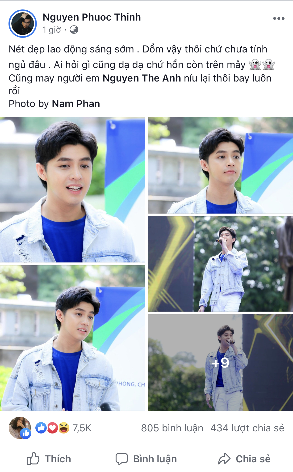 Thế nhưng nếu bạn nghĩ anh chàng thực sự tỉnh thì bạn đã nhầm. Sau khi chiêu đãi khán giả thủ đô bằng loạt tiết mục sôi động xong, Noo Phước Thịnh đã đăng tải loạt ảnh chụp tại sự kiện lên trang facebook cá nhân cùng dòng trạng thái khiến ai cũng phải “té ngửa”. Bên ngoài cố gắng tỉnh táo, quẩy sung cùng người hâm mộ là thế nhưng thật ra nam ca sĩ cũng như tất cả mọi người khi phải “đi làm” vào sáng sớm, đó là đều… chưa tỉnh ngủ. Anh chàng chia sẻ ai hỏi cũng dạ vâng như vậy thôi chứ hồn còn ở… trên mây. Bài viết của Noo Phước Thịnh khiến người hâm mộ ai cũng phải bật cười trước độ đáng yêu và thật thà của nam ca sĩ. Dù khá mệt khi phải diễn vào lúc sáng sớm thế nhưng anh chàng vẫn cố gắng hết mình để mang lại những tiết mục sôi động nhất cho khán giả, Noo Phước Thịnh quả là một chàng ca sĩ có tâm và nhiệt huyết phải không nào?