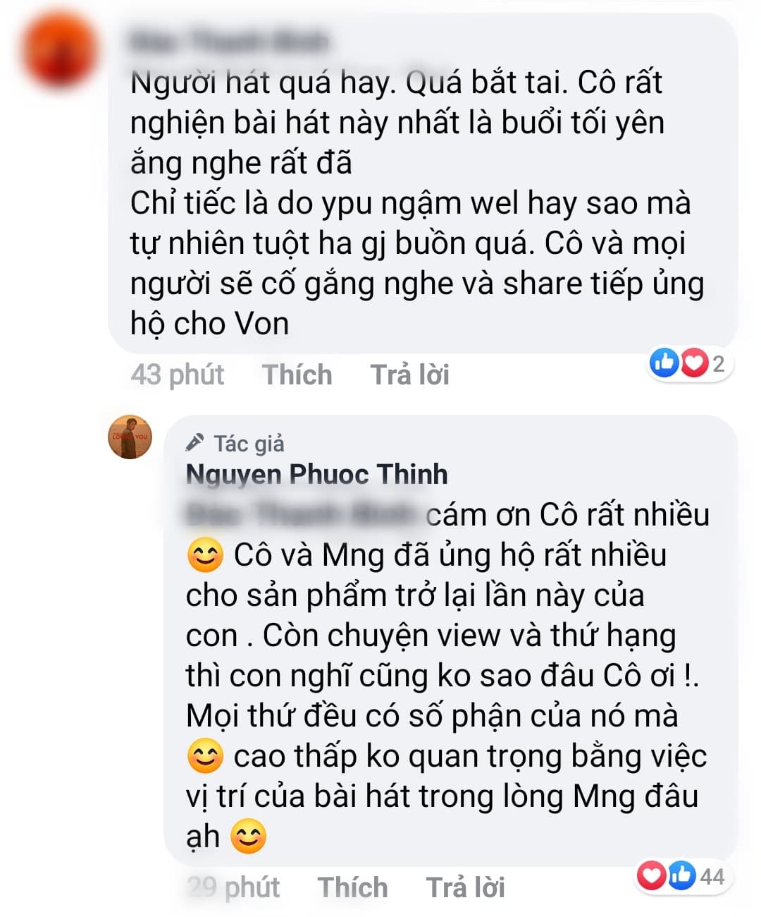 Trước thắc mắc từ người hâm mộ “khó có tuổi” này, Noo Phước Thịnh đã lên tiếng trả lời với một thái độ vô cùng dễ chịu. Nam ca sĩ không hề né tránh vấn đề khá tế nhị về lượt view trong câu trả lời của mình: “… Chuyện view và thứ hạng con nghĩ không sao đâu cô ơi. Mọi thứ đều có số phận của nó mà. Cao thấp không quan trọng bằng việc vị trí của bài hát trong lòng mọi người đâu ạ“.