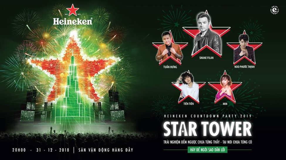 Bên cạnh Shane Filan, Heineken Countdown Party 2019 còn sở hữu dàn sao line-up hoành tráng với Tuấn Hưng, Noo Phước Thịnh, Min, Tiên Tiên.
