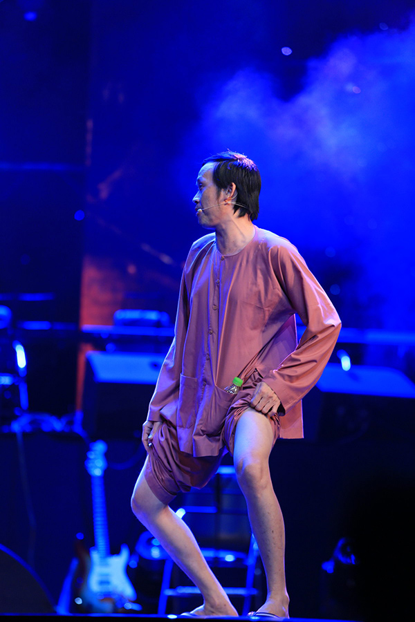 Thay vì mang tiếng hát phục vụ khán giả Hà Nội thân thương, Hoài Linh lại như phá vỡ không gian trầm lắng với những bản nhạc trữ tình trước đó với tiết mục hài kịch hóm hỉnh. Vẫn giữ hình ảnh ông nông dân giản dị, NSƯT Hoài Linh liên tục khiến mọi người cười sung sướng, không ngừng vỗ tay.