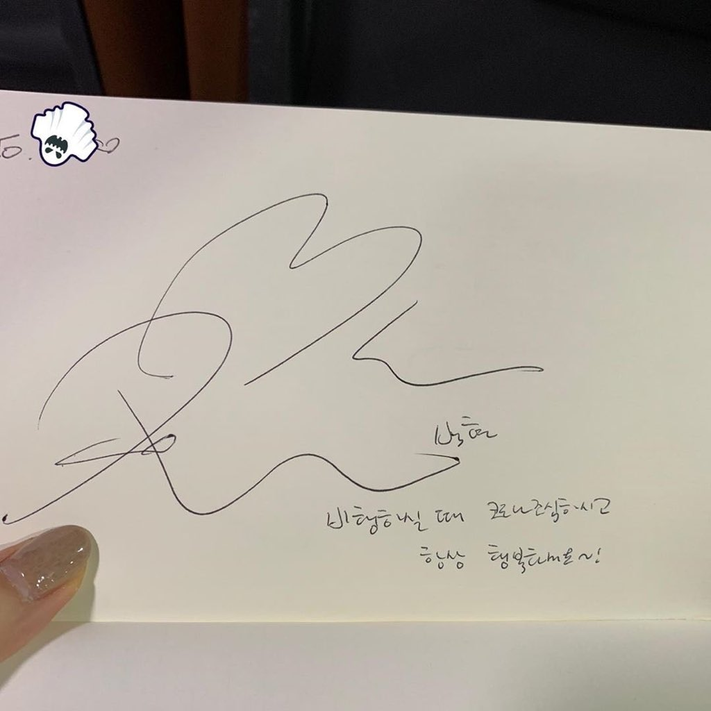 Bên cạnh đó, nữ tiếp viên này cũng đăng tải 2 bản chữ kí mà Baekhyun kí tặng cho cô và ông xã. Đối với chữ kí dành cho cô nữ tiếp viên này, Baekhyun đã gửi lời nhắn: “Hãy cẩn thận với virus corona trong suốt các chuyến bay của bạn, và hãy luôn luôn vui vẻ nhé”. Còn đối với chữ kí cho chồng cô nàng, Baekhyun nhắn nhủ: “Cảm ơn bạn đã thưởng thức các bài hát của tôi, và hãy chú ý cẩn thận sức khỏe nhé”. Việc nữ tiếp viên hàng không đã chia sẻ tính cách thật sự của Baekhyun cho thấy mức độ thân thiện, tử tế của anh chàng khiến non-fan cũng phải xiêu lòng dù mới tiếp xúc lần đầu.