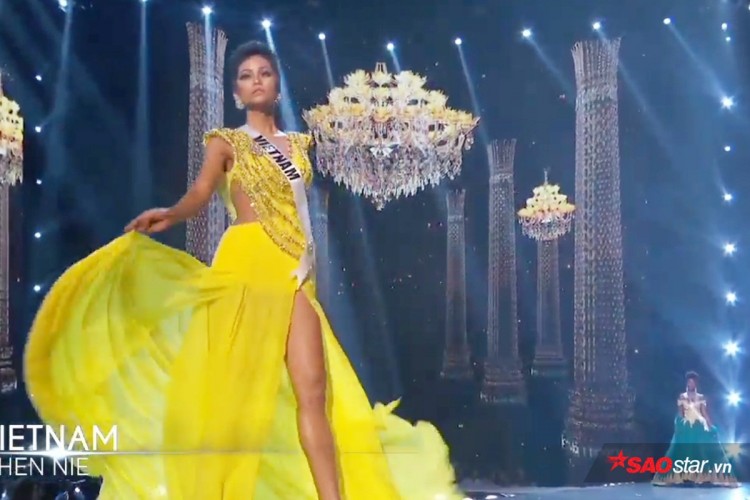 Trước đó, ở phần thi váy dạ hội, Hen Niê như muốn lấp luôn vẻ đẹp của các thí sinh còn lại.