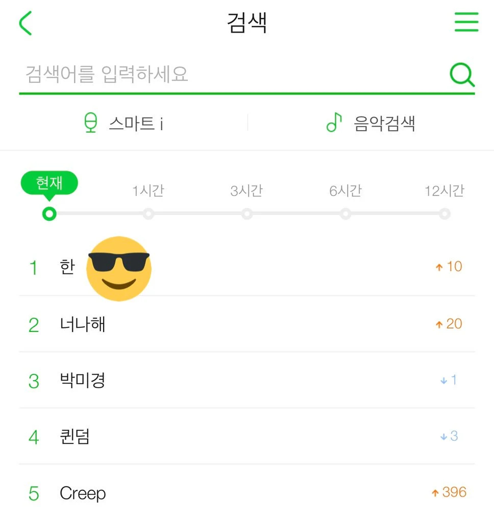 Top search trên Melon vào thời điểm cô nàng biểu diễn, dẫn đầu là từ khoá “Hann“.