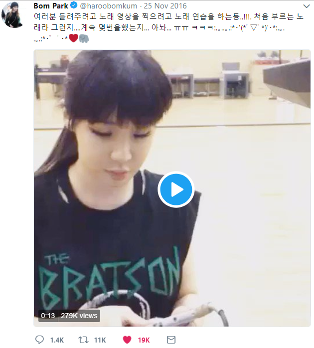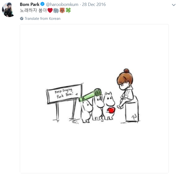 Tình yêu của Bommie đối với âm nhạc là vô tận. Ngay cả khi 2NE1 tan rã, nữ ca sĩ vẫn thường đăng những lời nhắn với fan rằng muốn tiếp tục hát. Không được chính thức hoạt động, Park Bom lâu lâu lại livestream để các BlackJacks có thể lại được nghe giọng ca thiên thần của cô nàng.