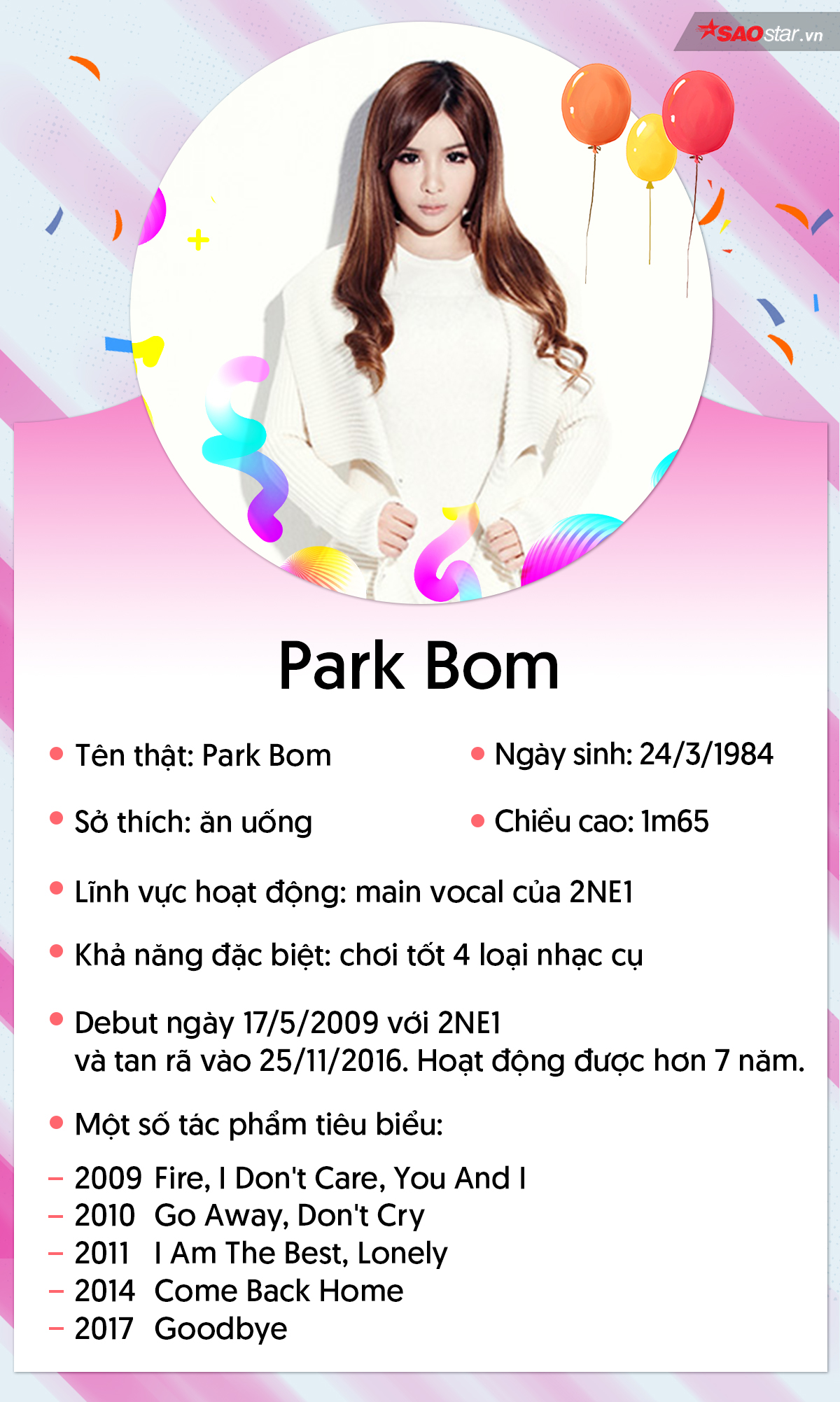 Nhân dịp sinh nhật lần thứ 34 của Park Bom, SAOstar sẽ giúp bạn tìm hiểu rõ về nữ ca sĩ này. Chắc chắn sau bài viết, bạn sẽ càng yêu cô ấy nhiều hơn nữa.