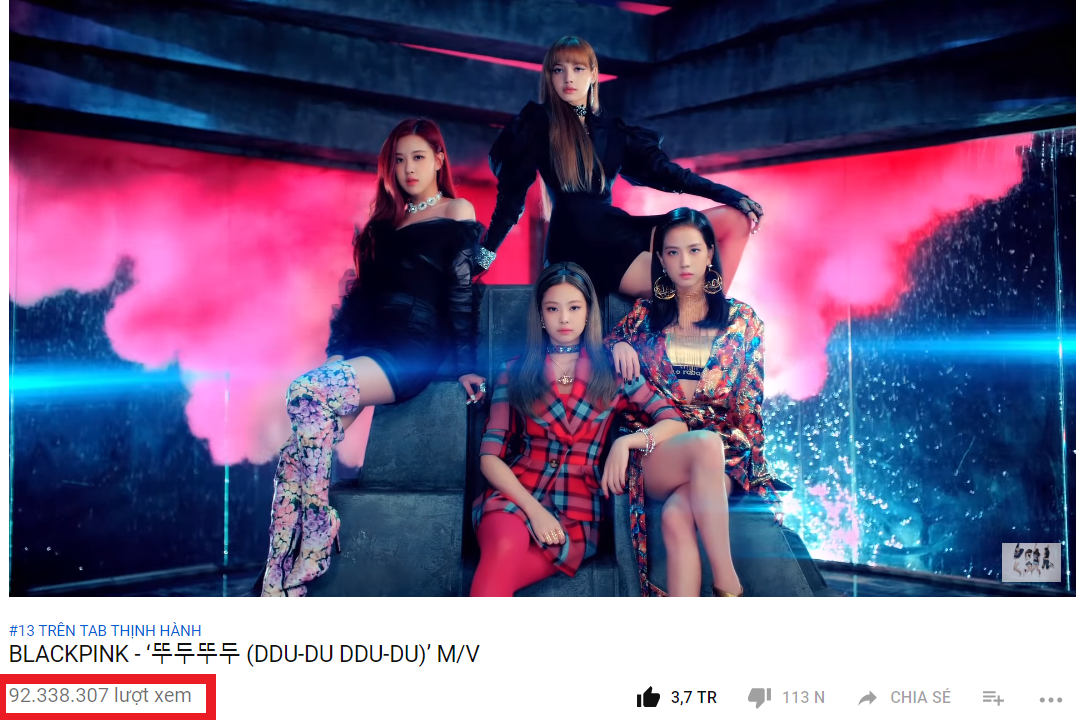 MV Ddu-du Ddu-du phát hành chỉ hơn 8 ngày nhưng lượng view đã vượt con số 90 triệu khiến BlackPink trở thành nhóm nhạc nữ Hàn Quốc đầu tiên làm được điều này.