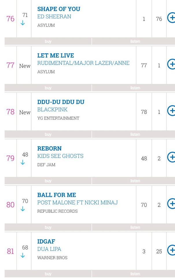 BlackPink cũng là nhóm nhạc nữ Hàn Quốc đầu tiên có bài hát góp mặt tại Top 100 BXH Official Singles Chart của nước Anh.